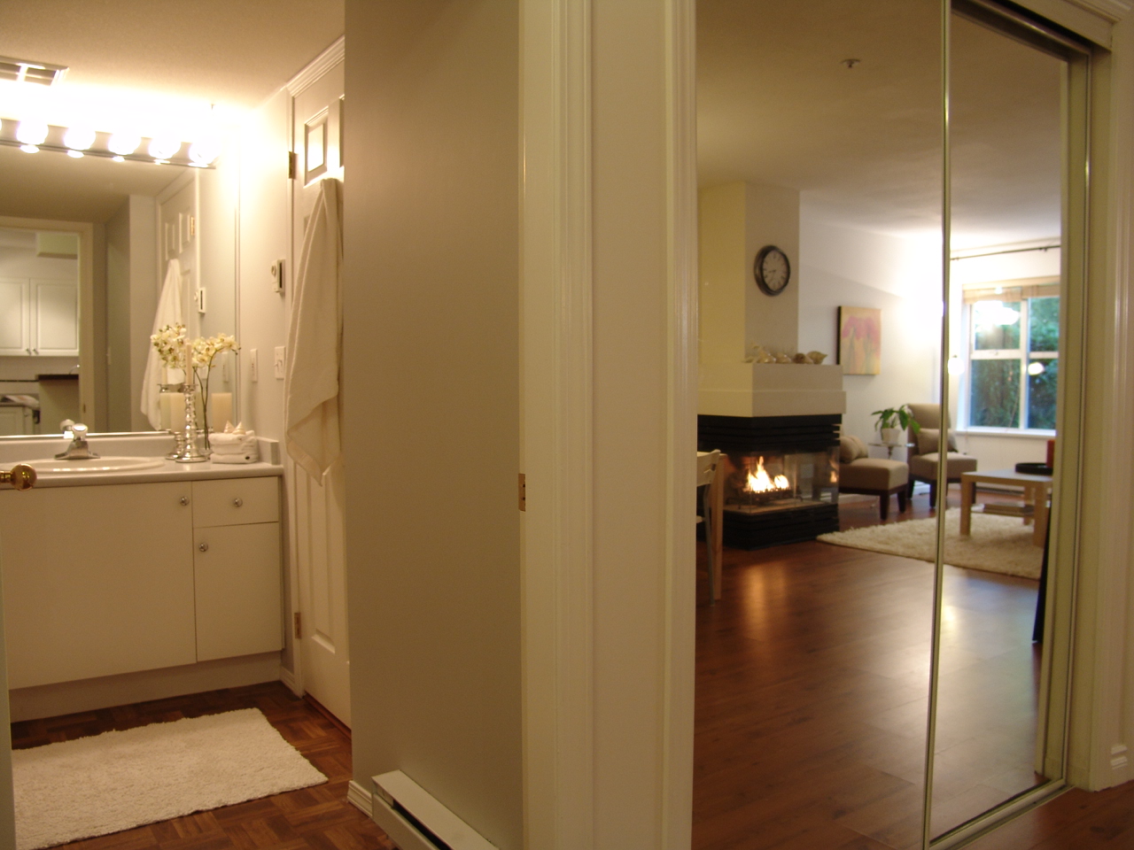 Ultra-spacious 1 bedroom suite in popular Arbutus Walk neighbourhood! 3-sided gas fireplace is central to the bright open-plan living and dining rooms. Kitchen features SS appliances and breakfast bar, ideal for entertaining. King-size master bedroom with walk-in closet. Insuite laundry. Large 155sqft private deck (and BBQ's are OK!). Bonus: in-suite storage plus separate storage locker! Well run building with pro-active strata where pets are welcome and rentals are permitted. This home is freshly painted, and shows beautifully. Fantastic location within minutes of South Granville and Kitsilano shops and restaurants, beach and easy transit to UBC and downtown. Excellent value!