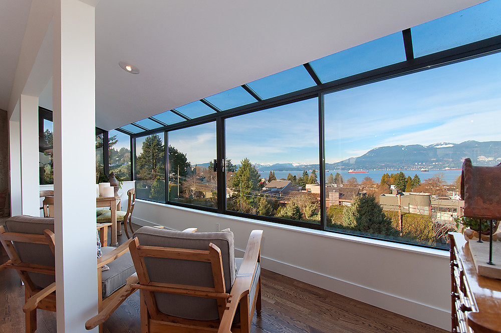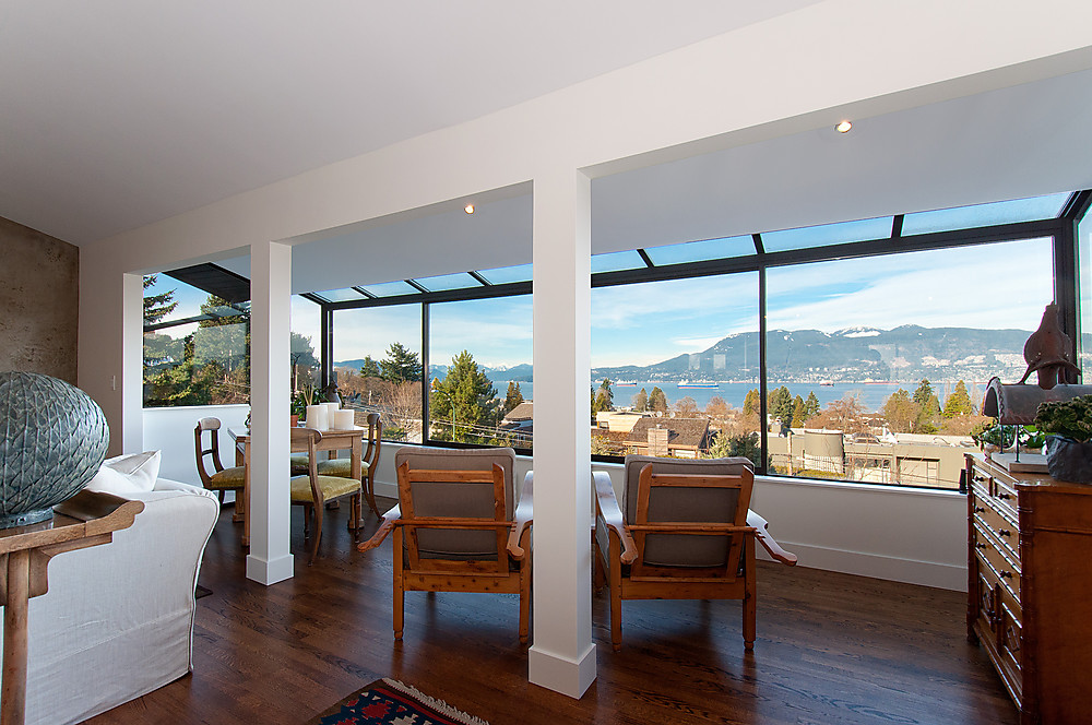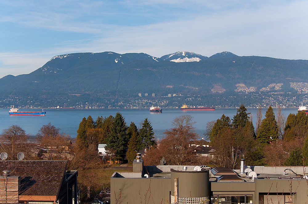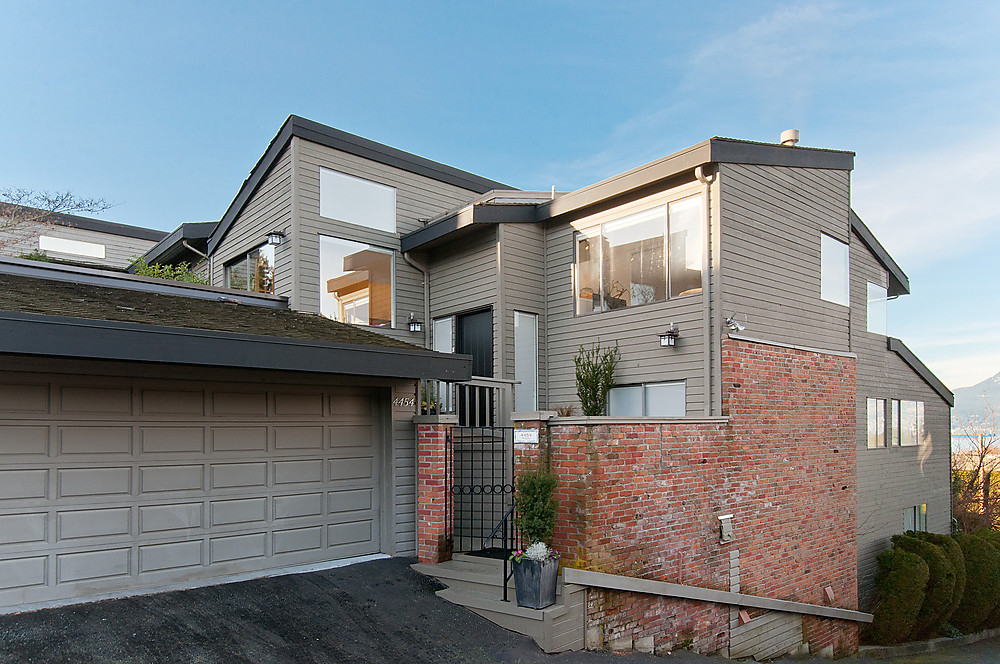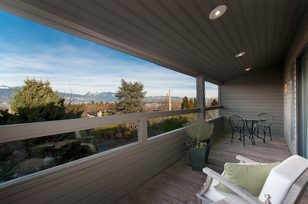 Breathtaking ocean and mountain panoramas create the backdrop for this tastefully updated West Coast contemporary, 5 bedroom, 3 ½ bath, 3 level home, perched above Spanish Banks on a 3519sqft view lot, one of 5 homes on an almost one-acre development that shares a resort-style outdoor pool. Sophisticated elegance, custom finishes (including stainless steel staircase railing) and clean lines are the underlying themes of this stunning light-filled home. Modern open floor-plan, hardwood and tile floors, vaulted ceilings, skylights, and views spanning from Point Atkinson to the downtown skyline! 2 car attached garage, fenced garden and decks galore. Short walk to beaches, parks, community centre and shops. This home is spectacular and shouldn't be missed.