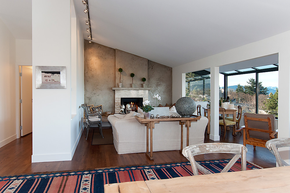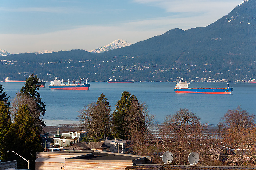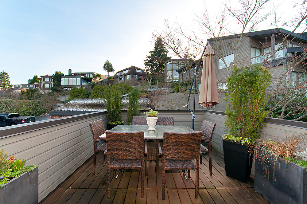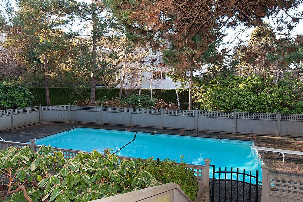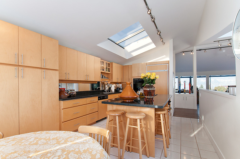 Breathtaking ocean and mountain panoramas create the backdrop for this tastefully updated West Coast contemporary, 5 bedroom, 3 ½ bath, 3 level home, perched above Spanish Banks on a 3519sqft view lot, one of 5 homes on an almost one-acre development that shares a resort-style outdoor pool. Sophisticated elegance, custom finishes (including stainless steel staircase railing) and clean lines are the underlying themes of this stunning light-filled home. Modern open floor-plan, hardwood and tile floors, vaulted ceilings, skylights, and views spanning from Point Atkinson to the downtown skyline! 2 car attached garage, fenced garden and decks galore. Short walk to beaches, parks, community centre and shops. This home is spectacular and shouldn't be missed.