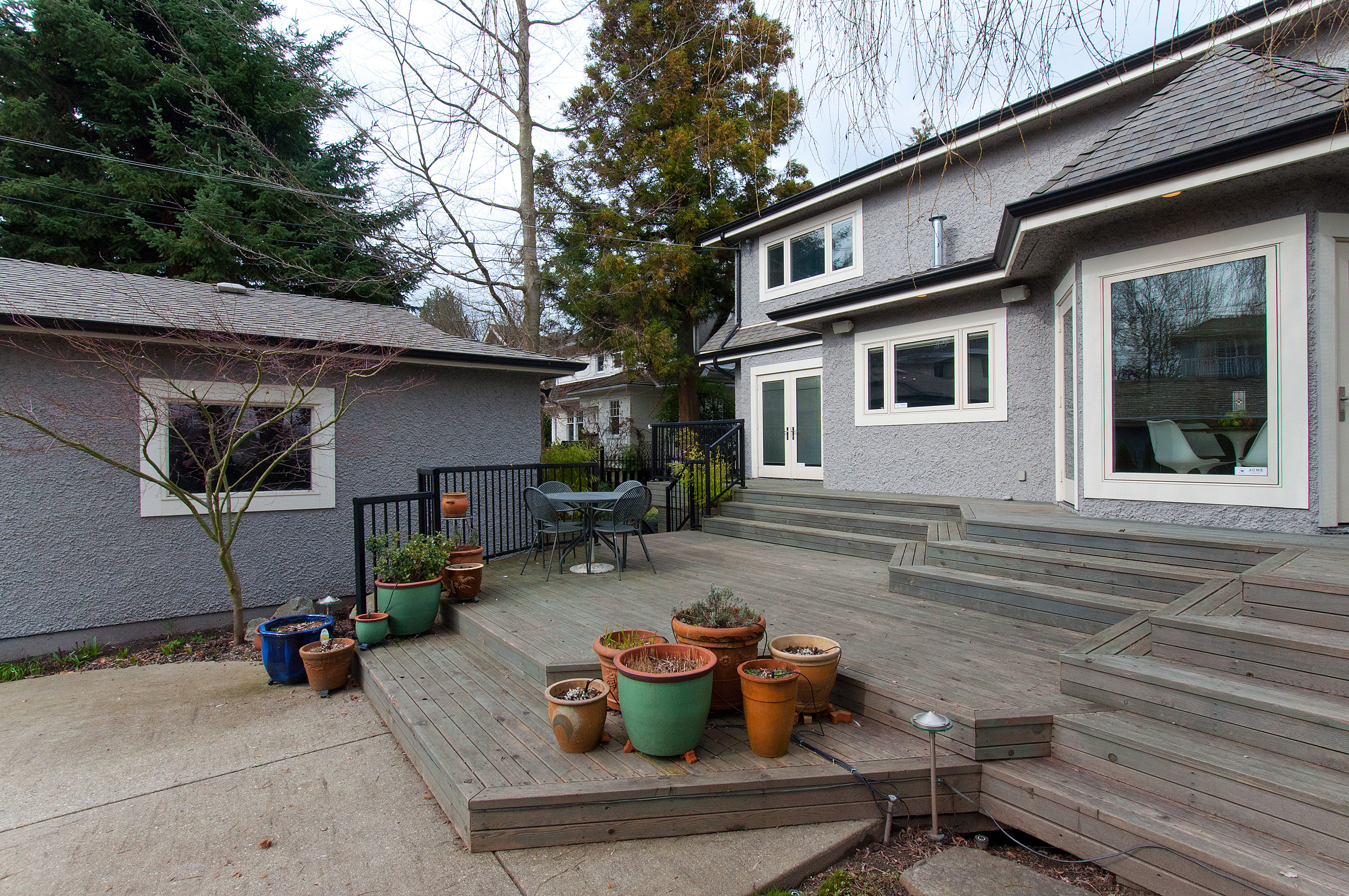 Ideally located on the high side of one of the most prestigious streets in Shaughnessy, this stunning 4382 sq ft, 5 bedroom (could be 6) home was completely remodelled in '07 and showcases the quality of a classic era and the streamline of contemporary design. The open plan kitchen features large granite island with seating, stainless steel appliances including double wall ovens, eating area, built in office and adjacent family room opening up to the South facing deck and professionally landscaped back yard offering a great indoor/outdoor lifestyle. The upstairs bedrooms are bright and airy with vaulted ceilings and skylights, and the spacious master suite features large ensuite, walk through closet and dressing room. Bright, newly finished basement offers great flexibility: fantastic hobby/games/recreation area, nanny's quarters, teenagers' escape, and can easily be converted back to a spacious suite. Walk to York House, Little Flower Academy and Shaughnessy Elementary and transit. The dog park is just around the corner. Minutes to Downtown and the airport.