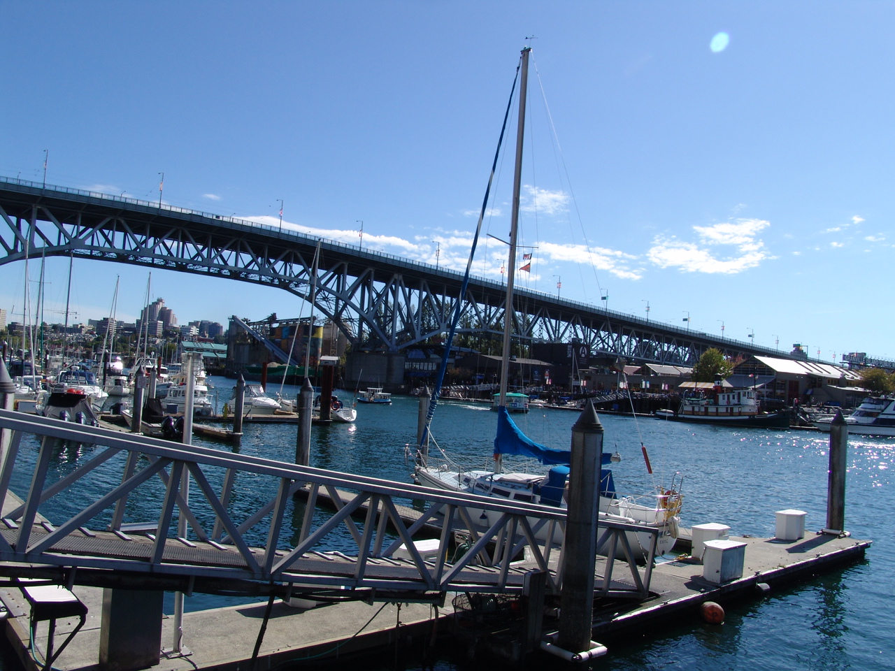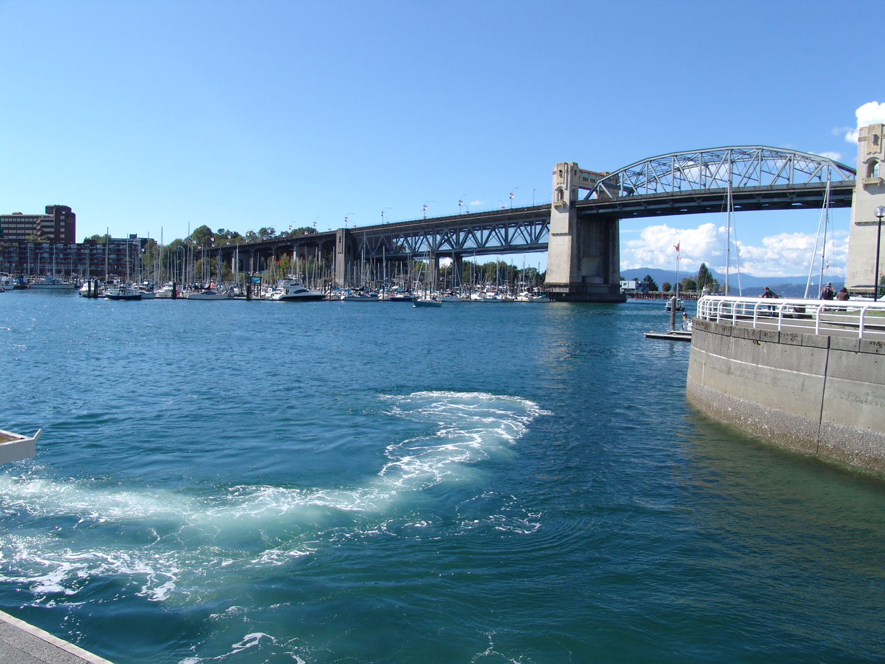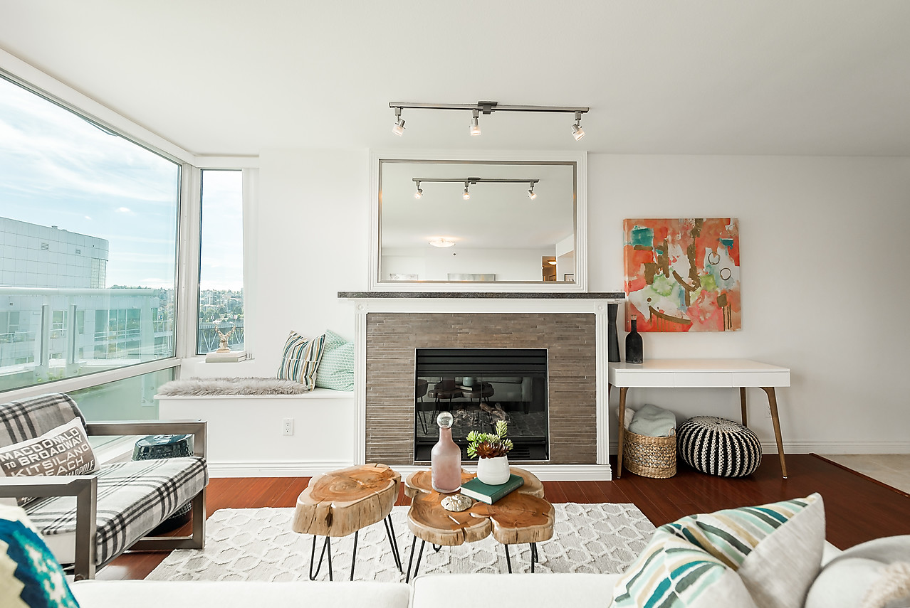 Bright and spacious 1008sqft semi-waterfront condo featuring water views to False Creek, the city, and Granville Island. Two good-sized bedrooms, 2 baths, gleaming hardwood floors, gas fireplace, floor-to-ceiling windows, stone counters, new paint and large 182 sq ft balcony accessible from every room. Resort-style amienites include well-equipped fitness facility, indoor swimming pool, sauna, and 24 hour concierge at your disposal. Fabulous location within steps of the seawall, restaurants, Aquabus to Granville Island, beaches, parks and Aquatic Centre, and all that vibrant False Creek area has to offer. 1 parking, and storage locker, rentals ok, 2 cats or 1 dog welcome.