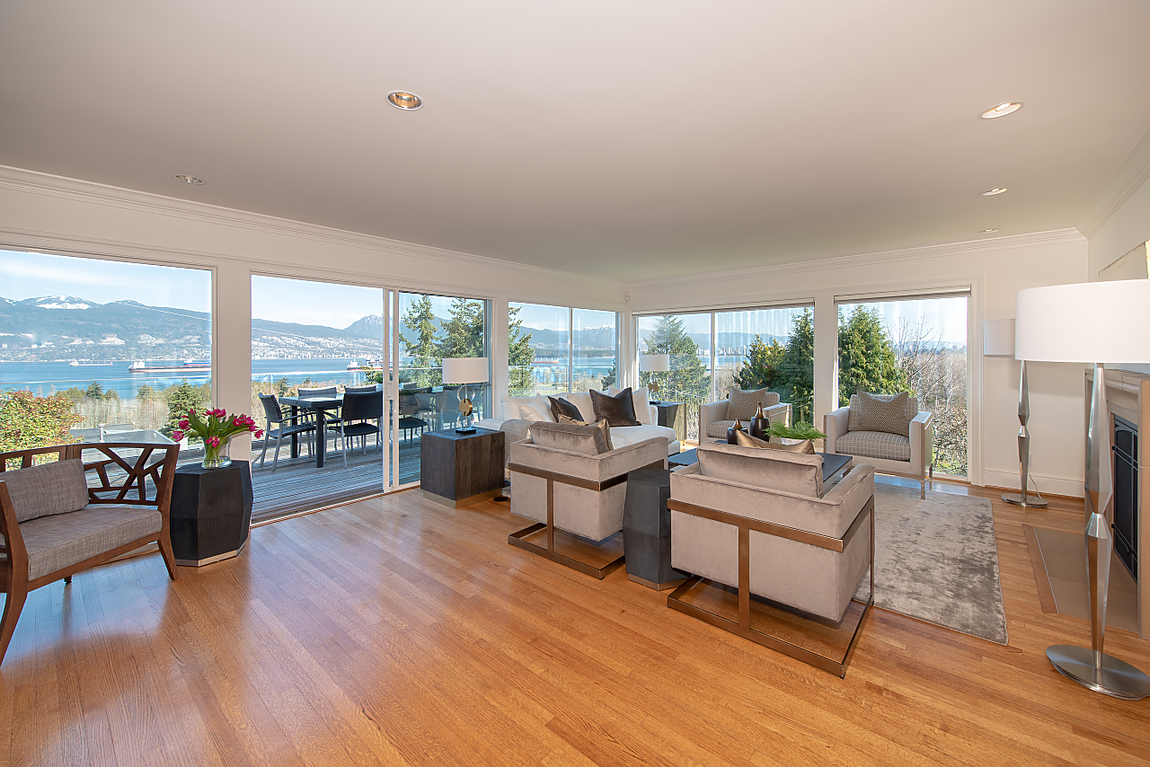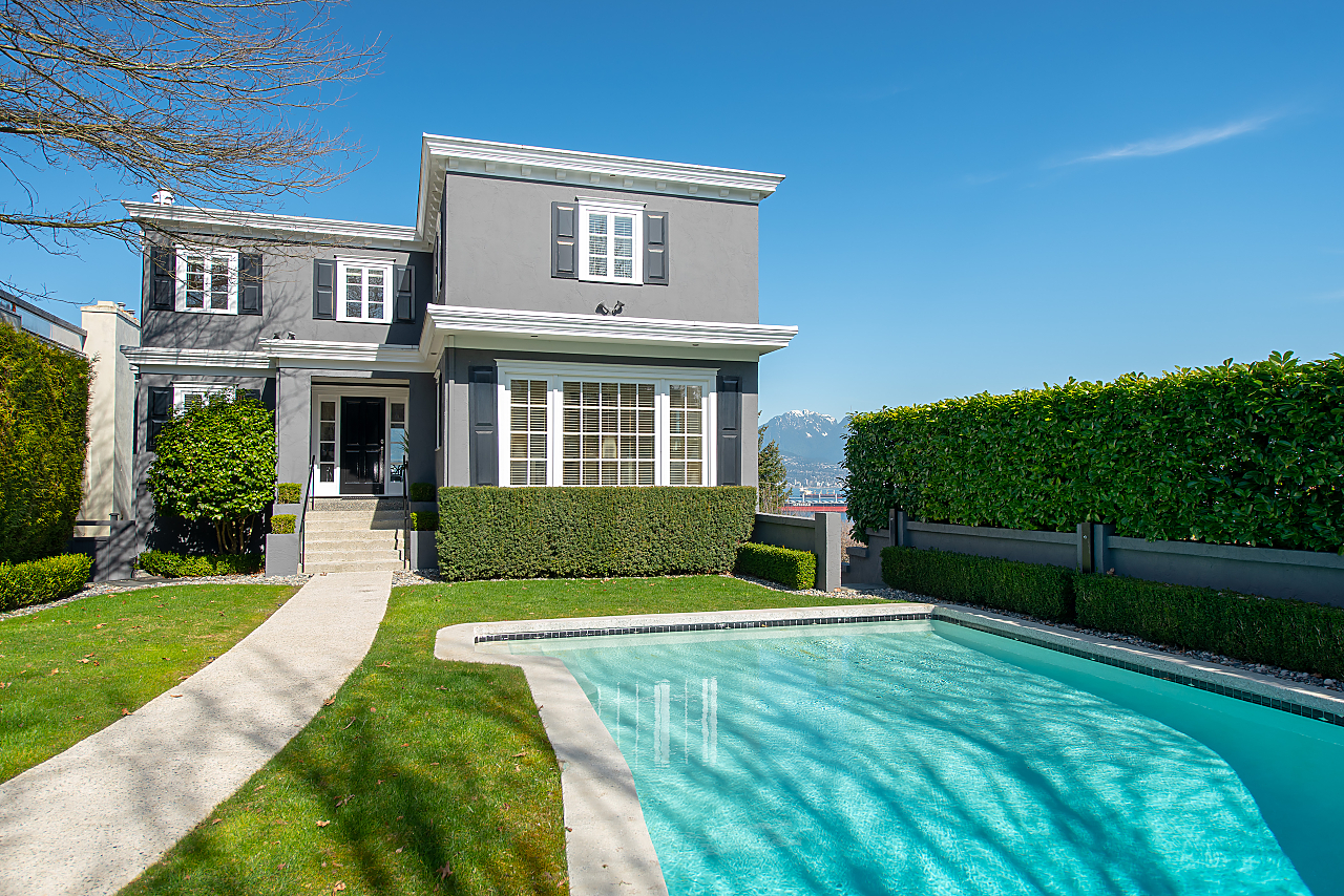 This superb 4-bedroom, 4 bath home's unique positioning on a bluff affords truly unbelievable panoramic views spanning from the downtown skyline all the way to Bowen Island, and FROM ALL 3 FLOORS! The fabulous open plan and walls of glass draw your eye to the picture perfect views from the moment you enter. A fantastic lifestyle property with private south-facing outdoor pool, 2 hugs deck and a level backyard enjoyed from the walk-out floor in this completely quiet setting. The one-of-a-kind home features exquisite detailing, solid oak floors throughout, AC, a soliid concrete garage and an oversize master suite. Meticulously maintained, better than new and move-in ready. Don't miss this one!