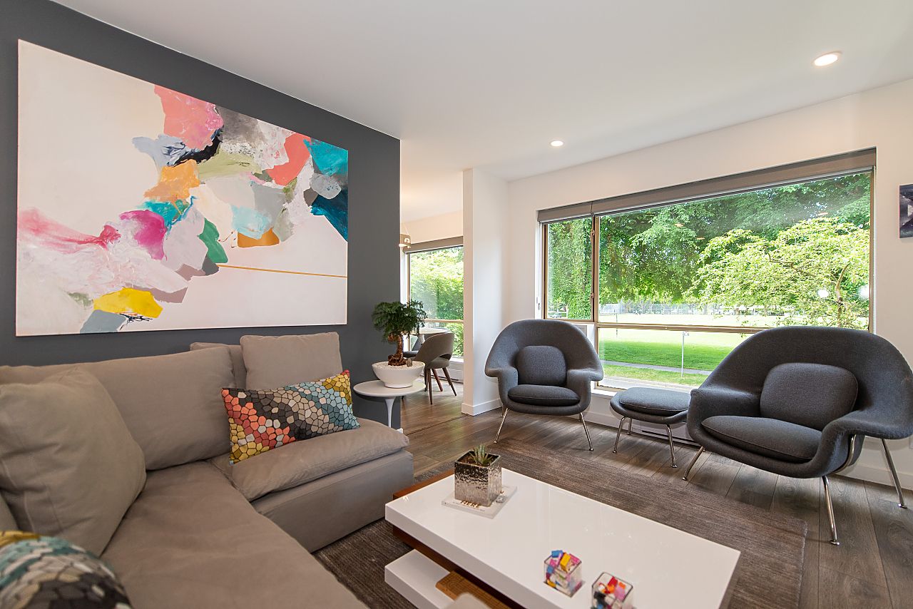- Bright and open 787 sq. ft. with lovely west-facing outlook to McBride Park
