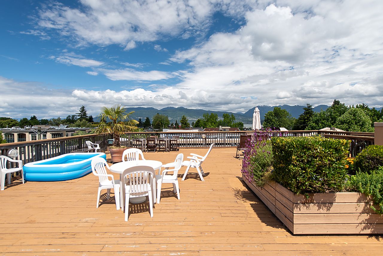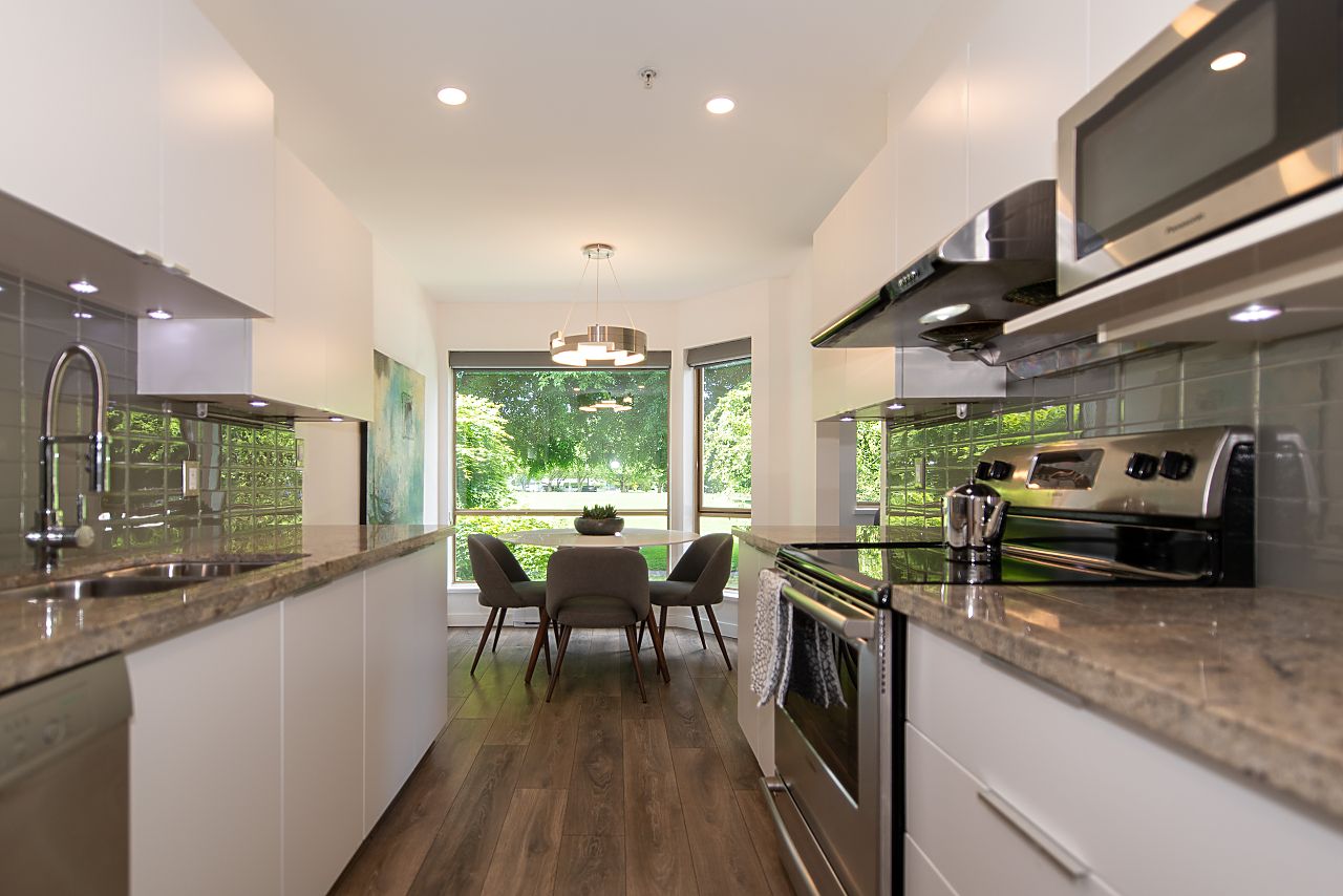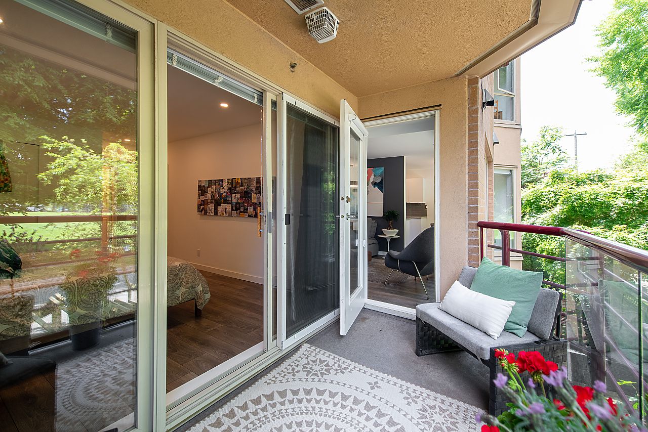 PERFECT! Set on the quiet side of a rainscreened building overlooking Mcbride Park this spacious, beautifully renovated 1-bedroom condo ticks all the boxes: west-facing park view, wide-plank laminate flooring, king-size bedroom with walk-in-closet, 16’ living room with space for an office, cozy gas fireplace, chef’s kitchen with Bosch SS appliances, sunny deck for BBQs, lots of insuite storage plus a storage locker, and the list goes on! Blenheim Place offers a large communal water-view roof deck for sun-lovers and is great for watching the fireworks. 1 parking in secure underground parkade. 2 pets OK. You will love this fabulous vibrant Kits location within steps of shops, park, and the beach nearby. Look no further, this is it!