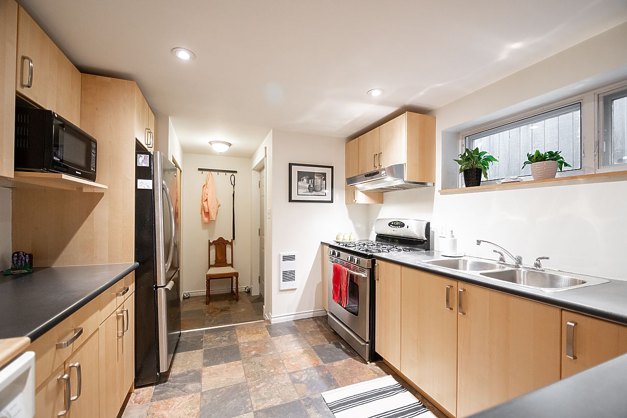This charming beautifully renovated heritage-style home has 2 good-size bedrooms on the main level and an office/flex space down, PLUS a roomy 1-bedroom basement suite. Oozing charm and character, the house was built circa 1928, and relocated in 2005 to the rear, upper level of the property onto a new foundation, with new drain tile and new sump, and mechanically updated to modern standards including new electrical, plumbing, and heating. The house was updated further when if was lifted in 2010 to create a full-height basement. Many recent upgrades and stylish renovations add to the charm and livability of this home including the newly opened-up and renovated kitchen, updated bathroom, and new office/den on lower level.