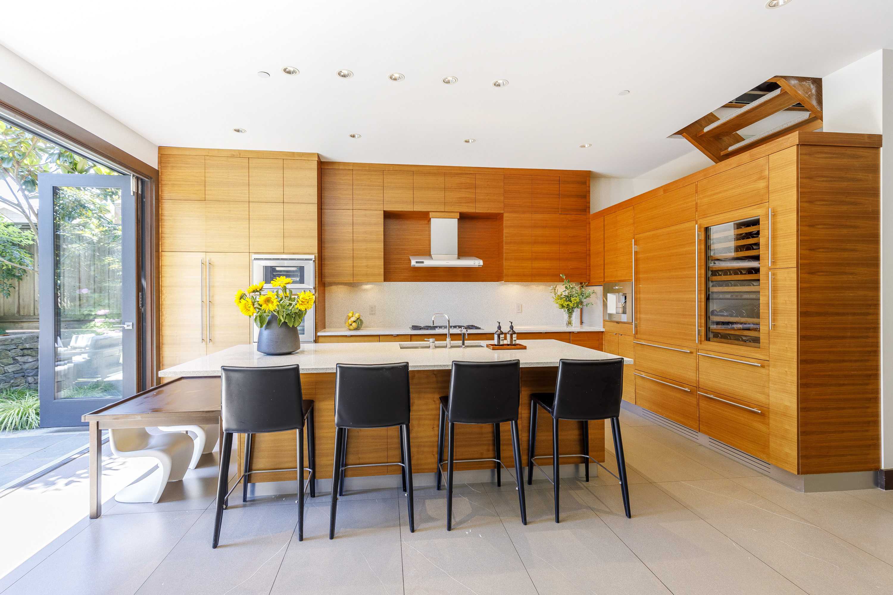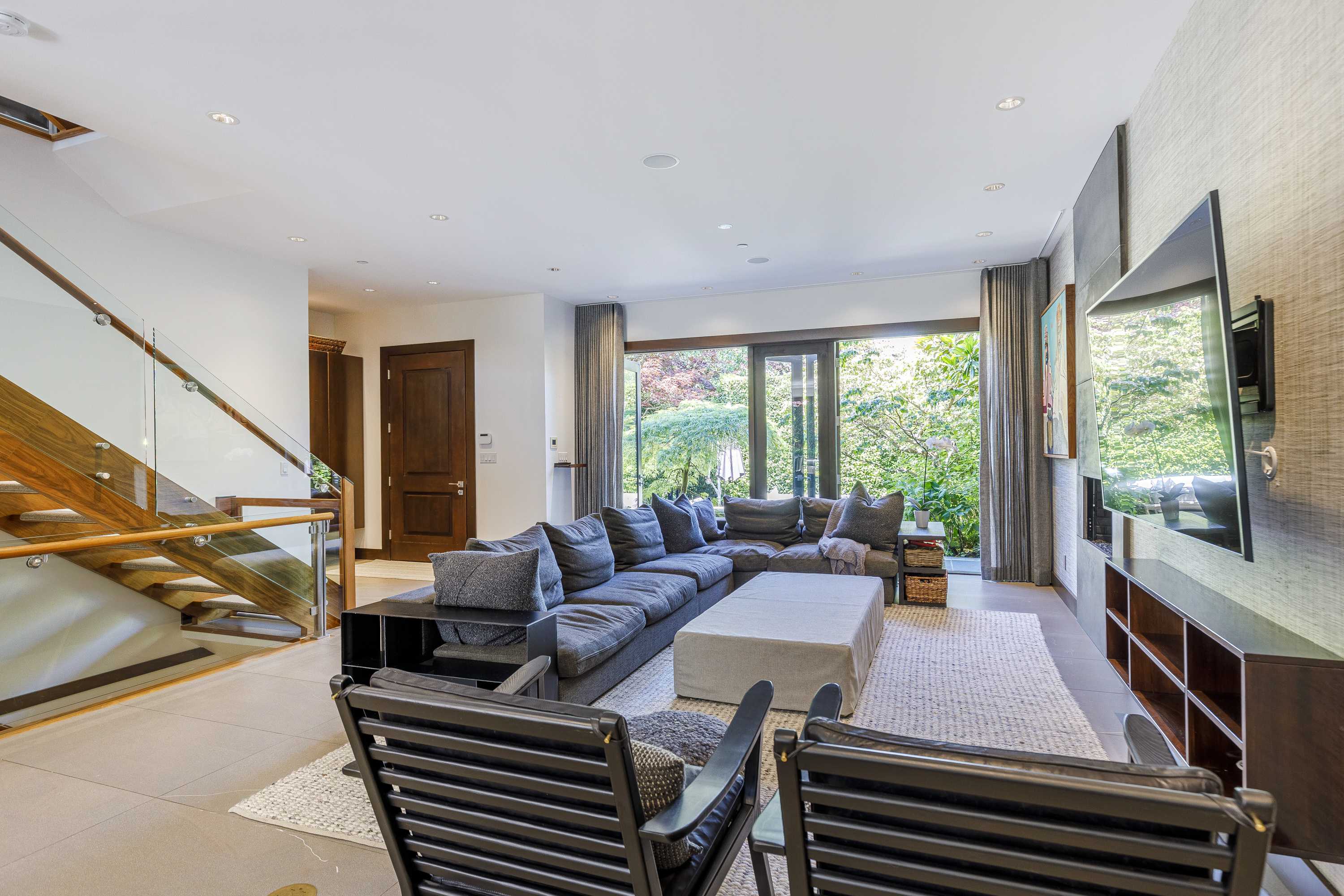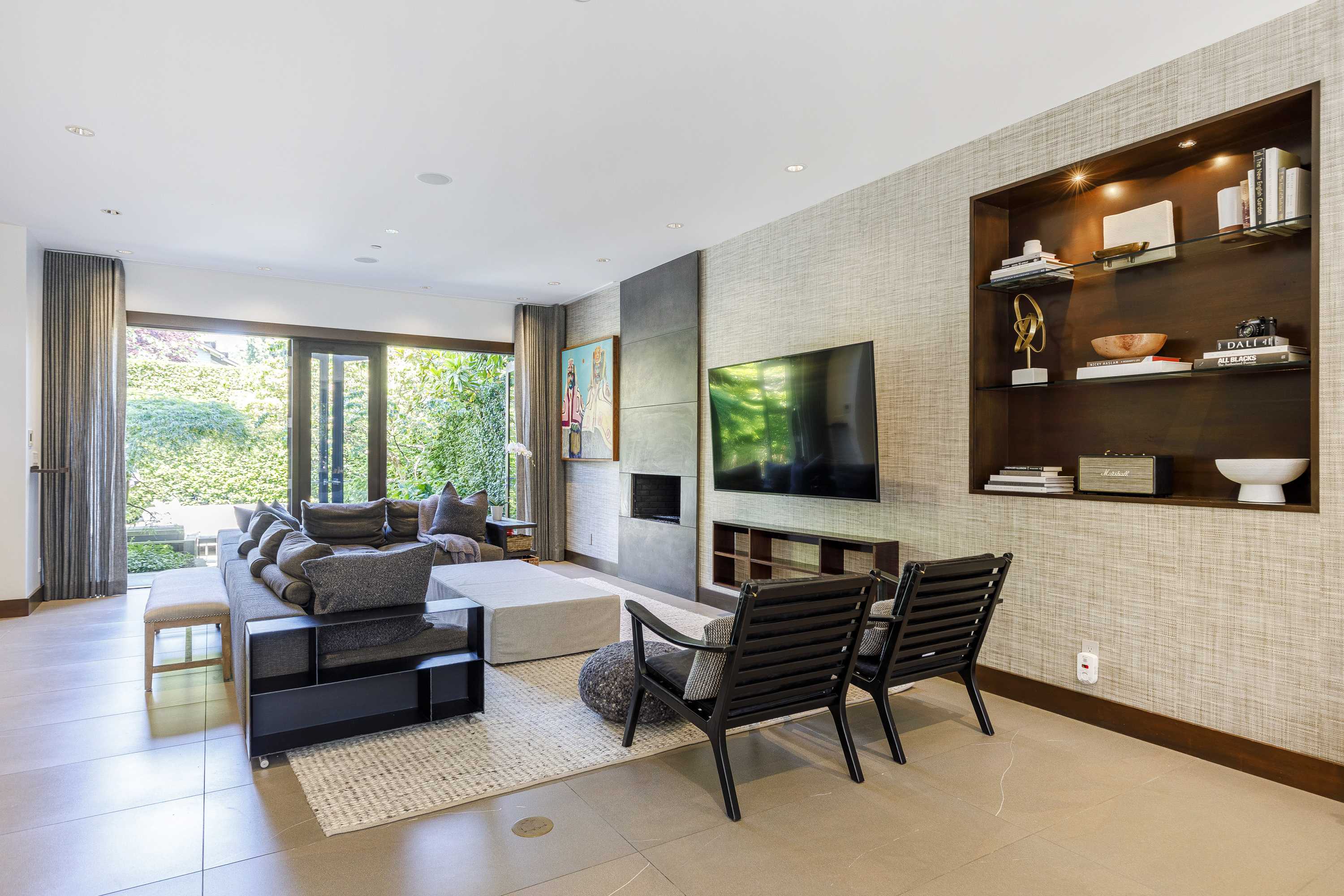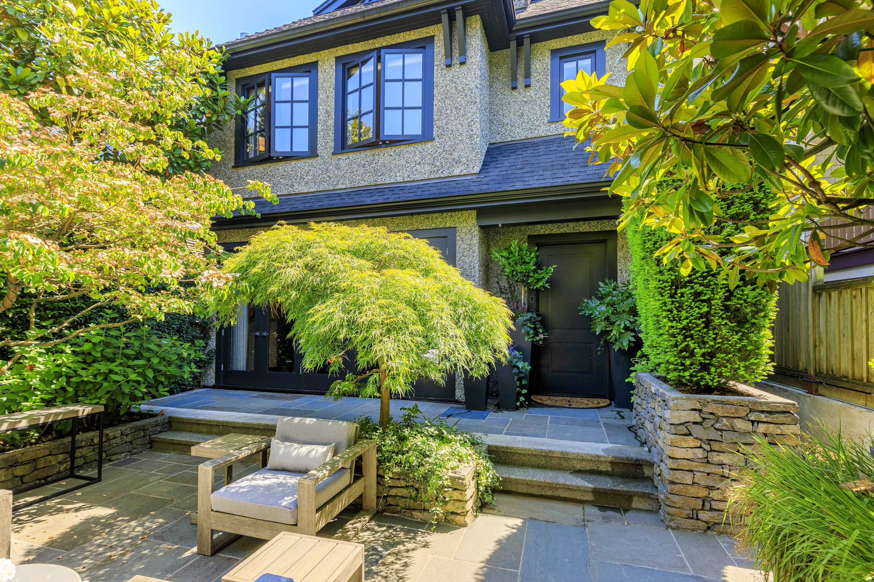 This IMPECCABLY designed home is located on a charming quiet lane in a popular Kitsilano neighbourhood within steps of the beach. Showcasing ocean and city views from the upper floors, the homes stunning contemporary interior perfectly compliments its heritage design exterior. The entertainment level features soaring 10' ceilings, a dramatic floating staircase, dual floor-to-ceiling polished concrete fireplaces, and a state-of-the-art chef's kitchen. Foldaway "Eclipse" French doors open to extremely private landscaped front and rear patios with a covered built-in gas BBQ. 3 bedrooms and 2 bathrooms upstairs including the master w/his and hers walk-in closets & a gorgeous ensuite bath. The light filled studio/office on top floor offers gorgeous views. Lower level features large rec room, wine cellar and laundry, plus loads of storage. Double car garage. Bayview Elementary and Kitsilano High school catchment. Walk to 4th Avenue shops.