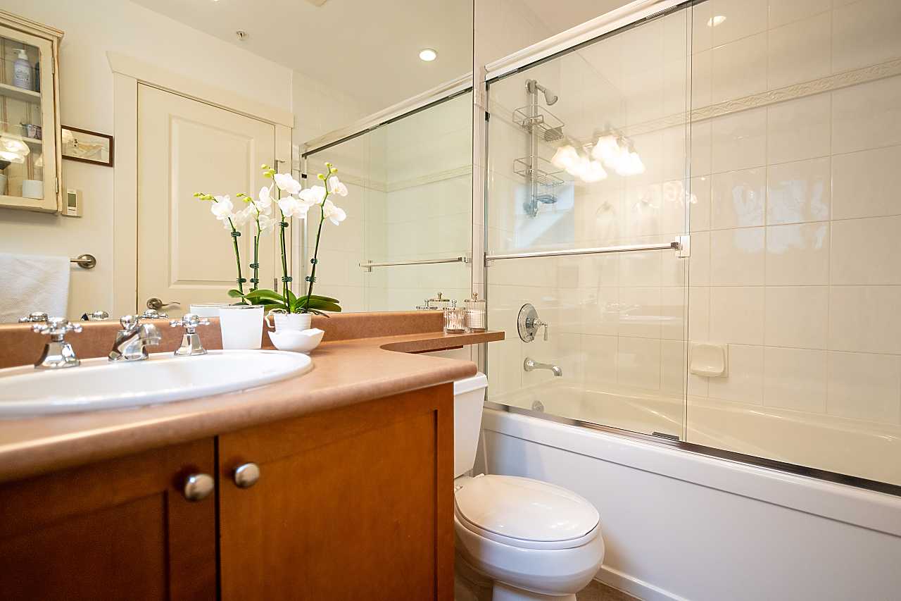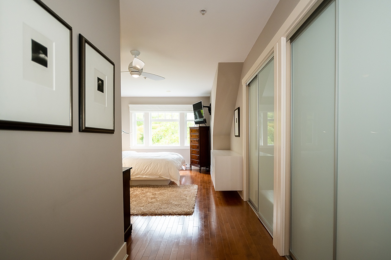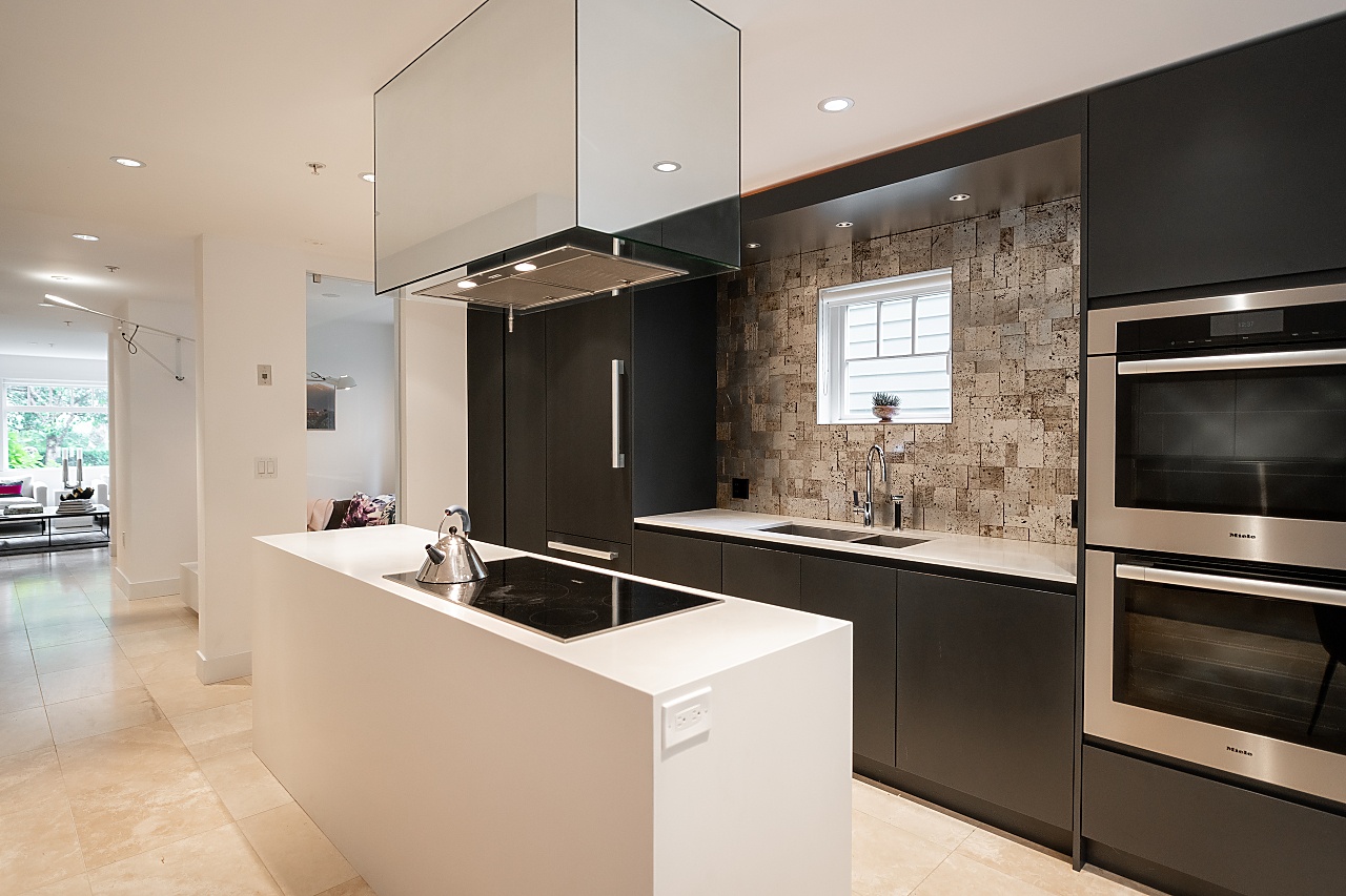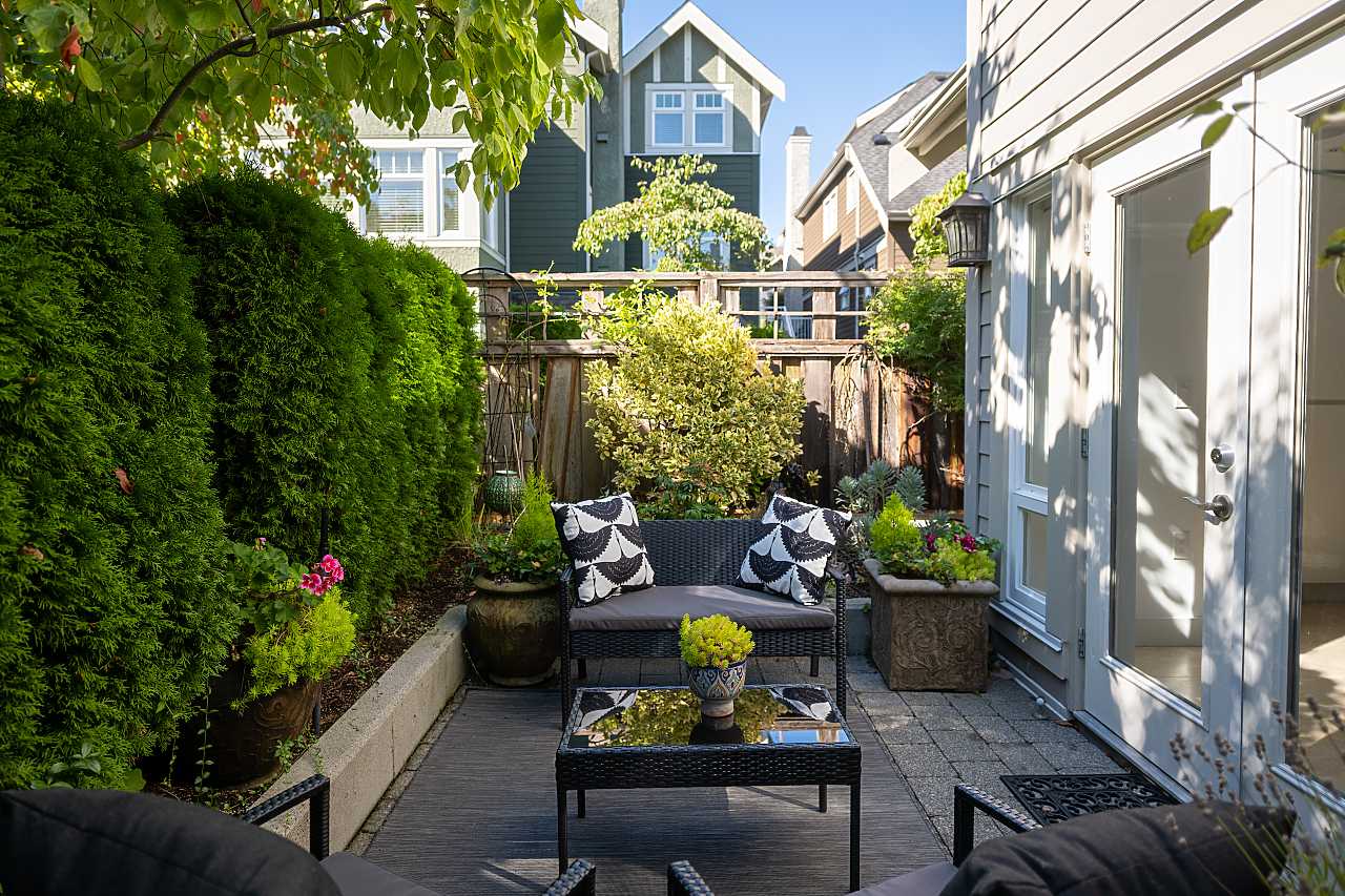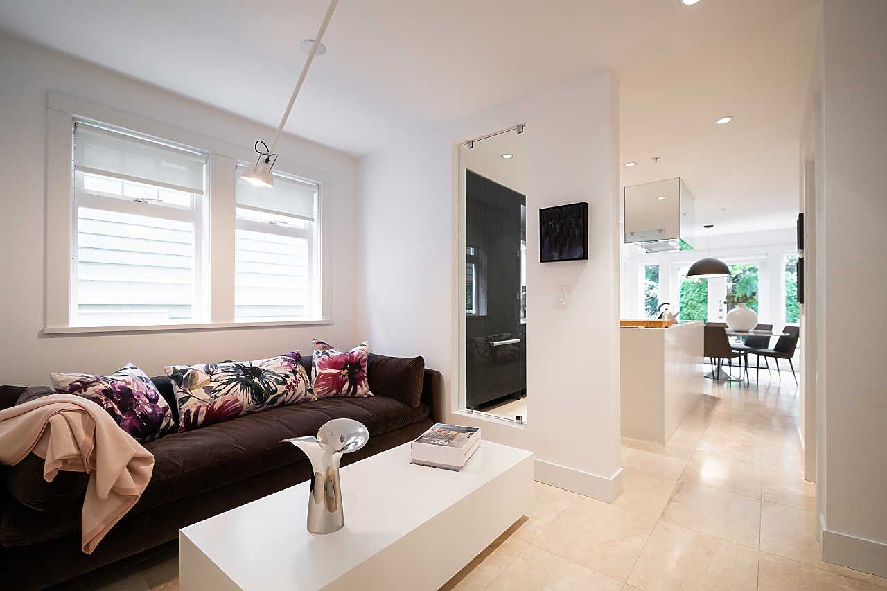 This exquisitely renovated water-view 1/2 duplex is set on a beautiful tree-lined street in an exclusive Point Grey neighbourhood in the coveted Sasamat Gardens development. Superb designer features abound throughout the spacious 2469 sq. ft. interior with 3 bedrooms, 4 bathrooms, and 2 offices. Features include gorgeous heated travertine floors on the main-level and gleaming engineered hardwood on the upper floors. The sleek contemporary kitchen and the dining area open via French doors to a sunny, wonderfully private south-facing patio. The top-level, with 2 decks, offers water and city views, built-in office and a bedroom (currently used as a rec room). The lower-level with soaring over-height ceilings offers a massive storage room, an office with built-in cabinetry, and direct access to 2 parking in the underground parkade. Sasamat Gardens features a beautiful garden courtyard, gym and meeting room. This outstanding home is within minutes of West 10th Ave shops, restaurants, transit, schools, UBC and the University Golf Club.