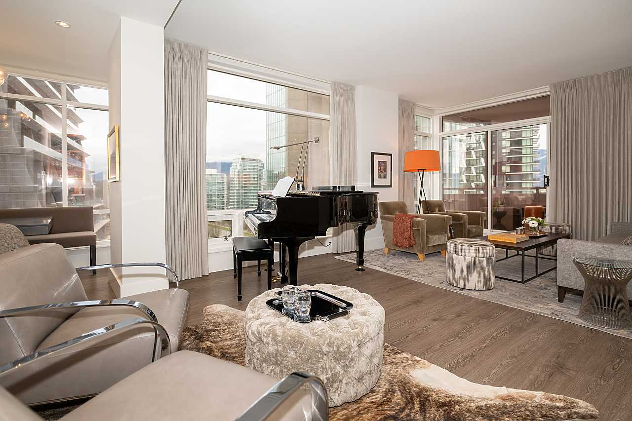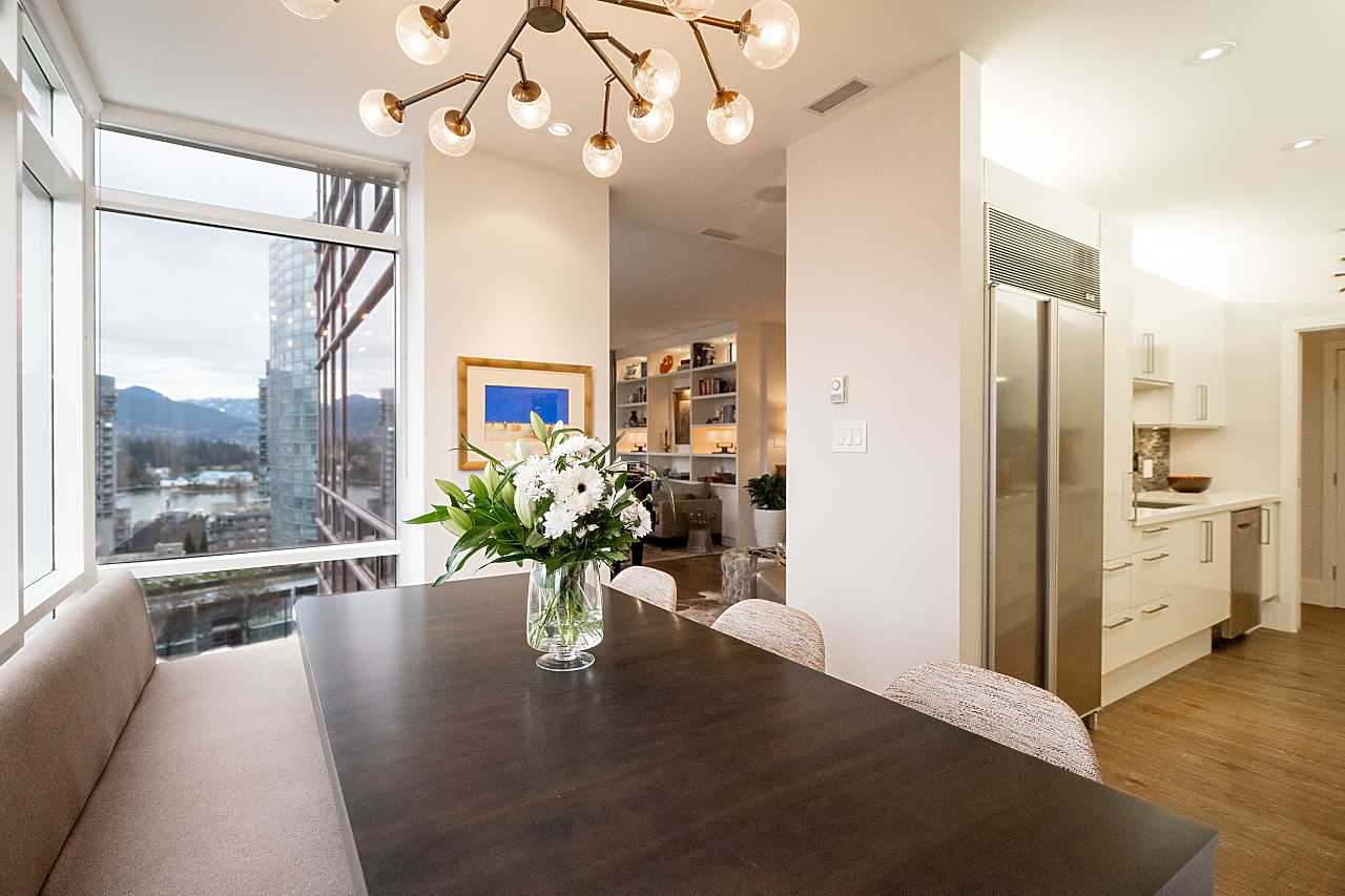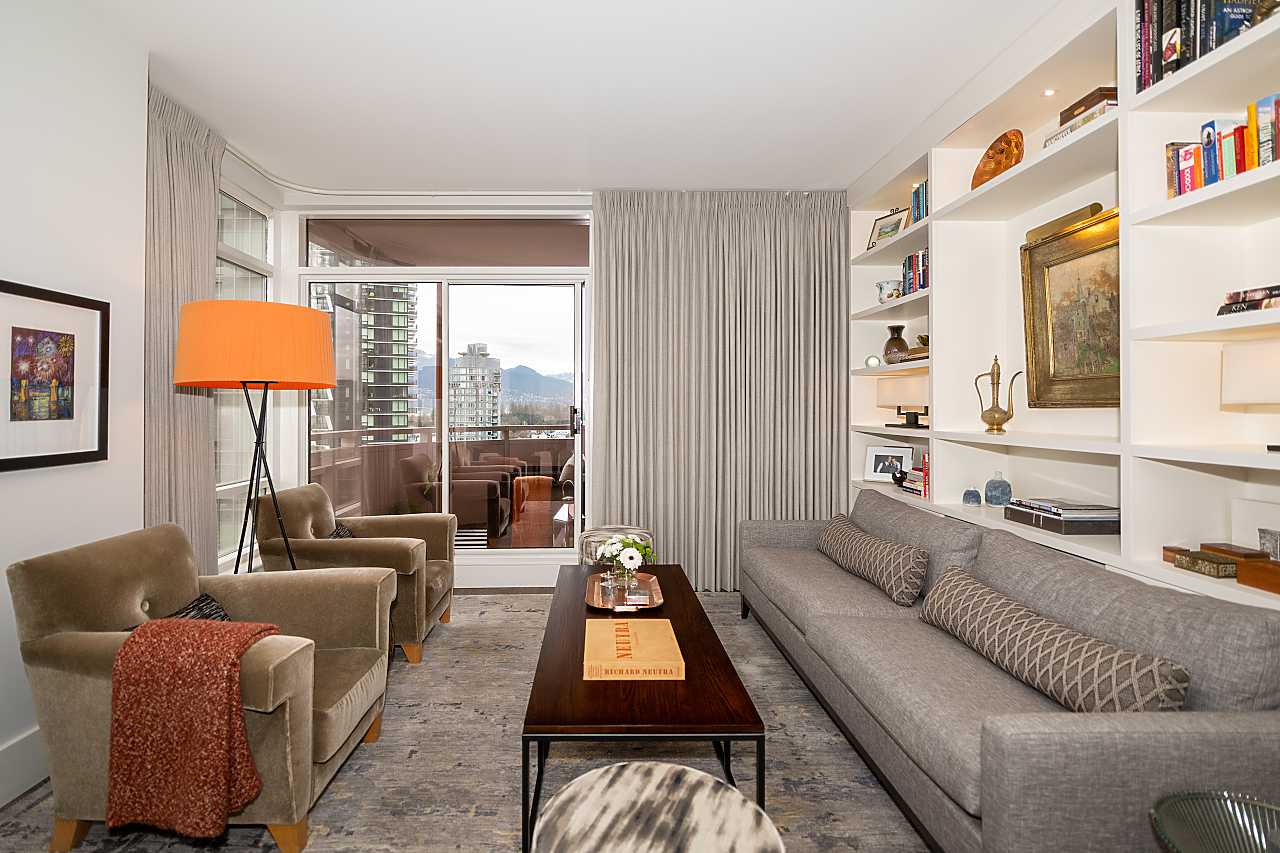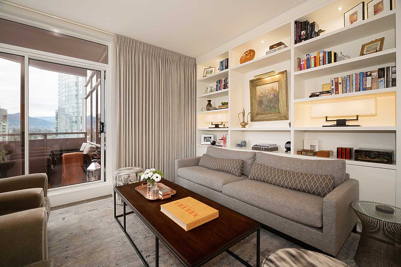 Exuding elegance and sophistication, this spectacular, masterfully renovated apartment comprises 1656 sq. ft. of luxurious living space. With impeccable design, custom details, and quality finishes, this outstanding air-conditioned home offers 2 bedrooms, 2 1/2 bathrooms, a family room (could be 3rd bedroom), chef's kitchen with eating area, and corridor views of the water and mountains. The iconic James Cheng designed building features a dramatic 3-storey lobby, 24/7 1st class concierge service, and resort-style amenities, all within steps of Robson Street shops & services, the Seawall and Stanley Park. This vibrant neighbourhood is quickly becoming one of the city’s most prestigious enclaves with spectacular landmark luxury condominiums being constructed nearby. Truly exceptional!