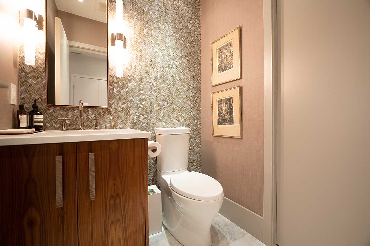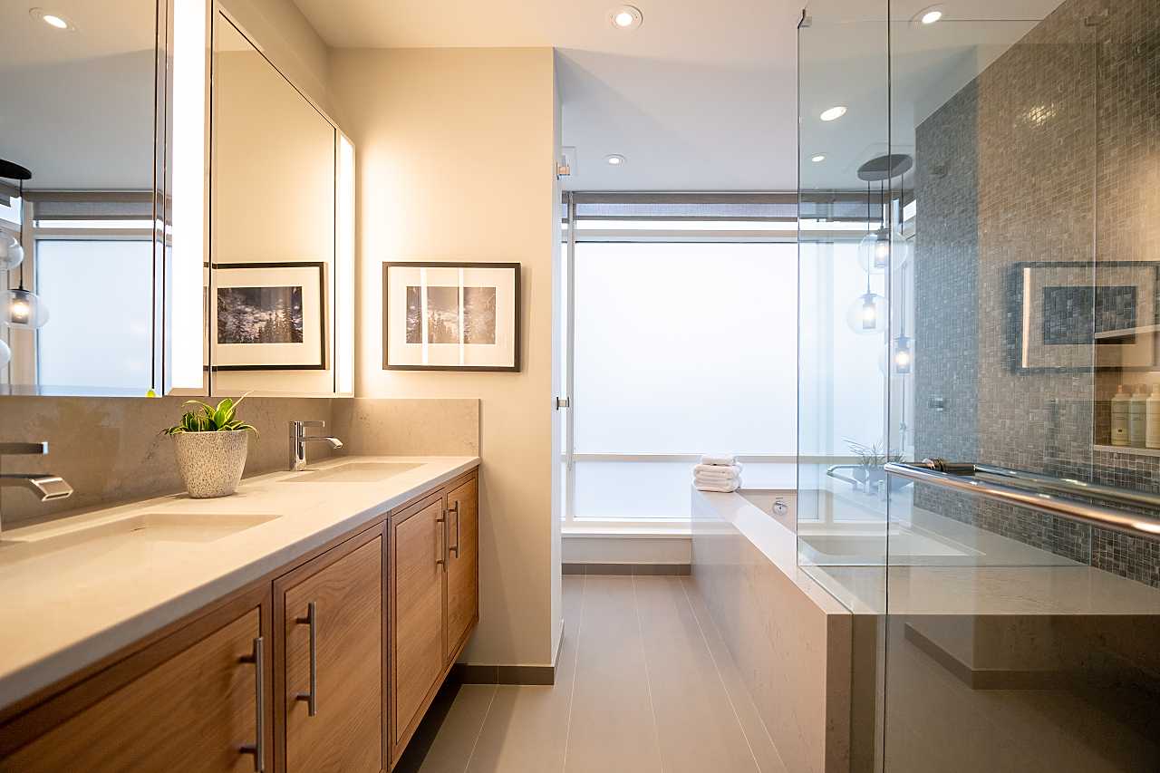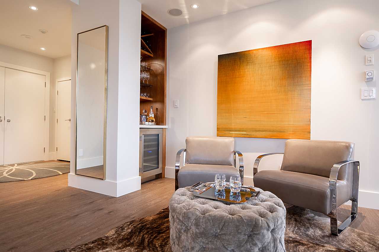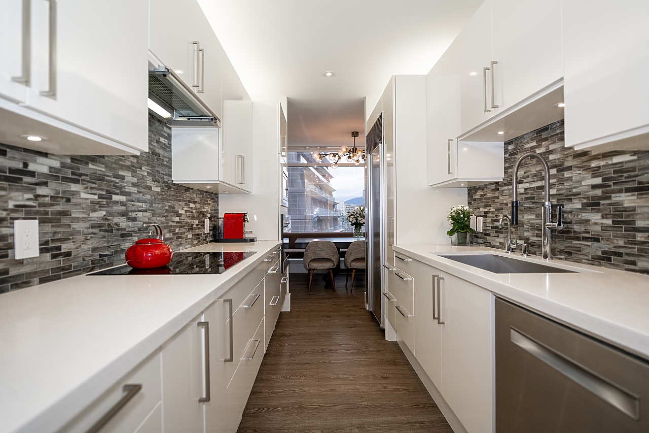 Exuding elegance and sophistication, this spectacular, masterfully renovated apartment comprises 1656 sq. ft. of luxurious living space. With impeccable design, custom details, and quality finishes, this outstanding air-conditioned home offers 2 bedrooms, 2 1/2 bathrooms, a family room (could be 3rd bedroom), chef's kitchen with eating area, and corridor views of the water and mountains. The iconic James Cheng designed building features a dramatic 3-storey lobby, 24/7 1st class concierge service, and resort-style amenities, all within steps of Robson Street shops & services, the Seawall and Stanley Park. This vibrant neighbourhood is quickly becoming one of the city’s most prestigious enclaves with spectacular landmark luxury condominiums being constructed nearby. Truly exceptional!