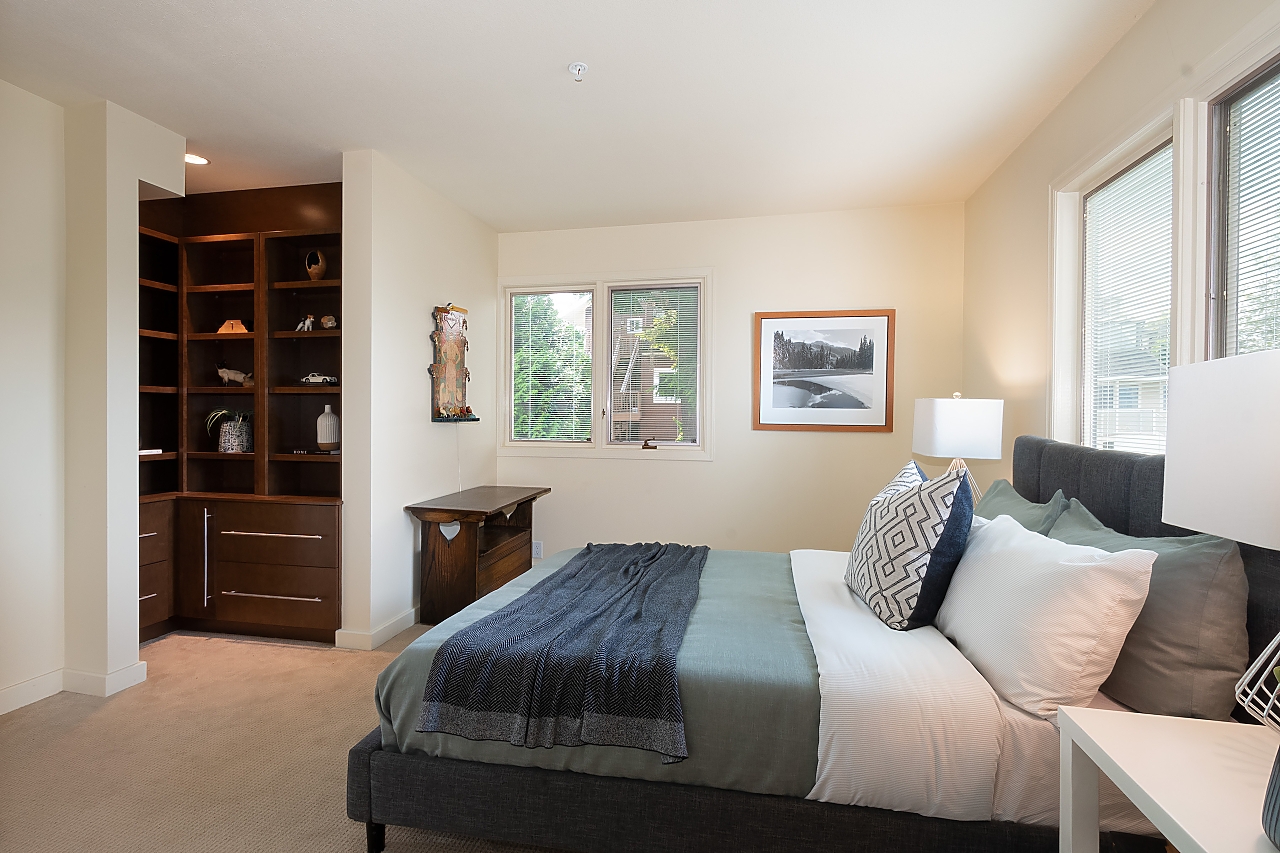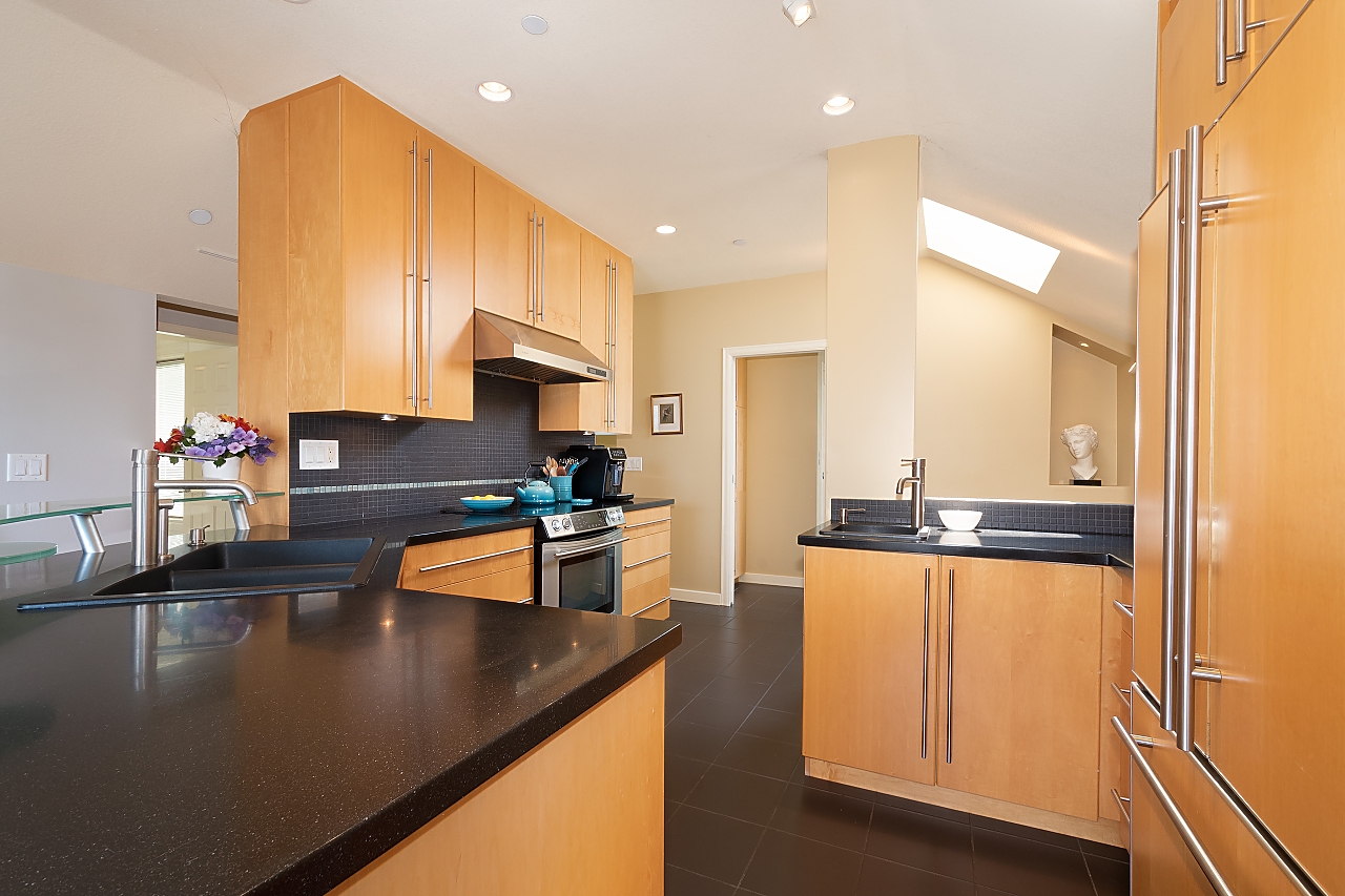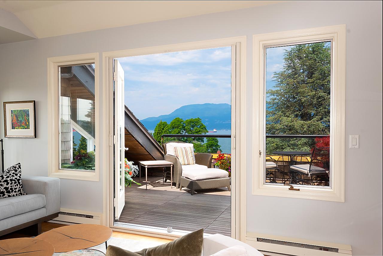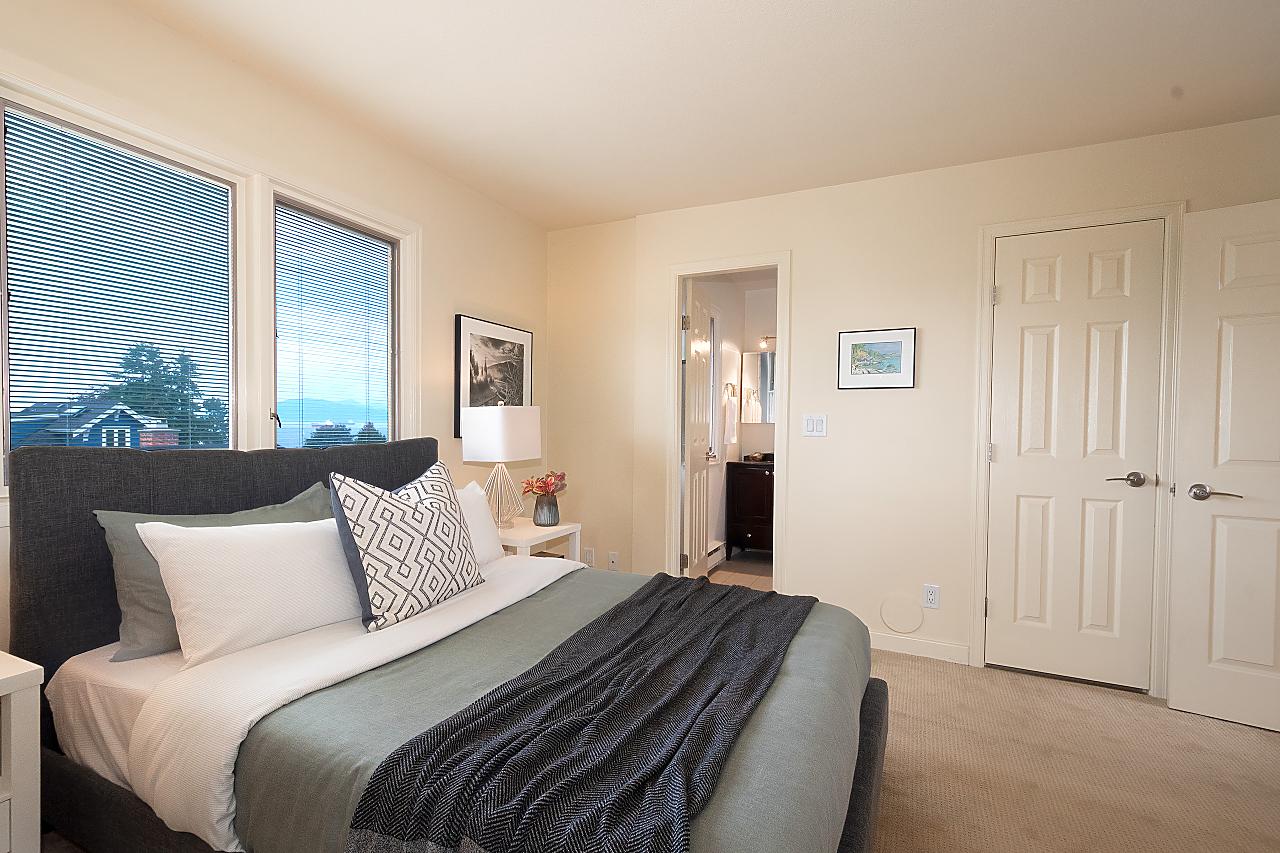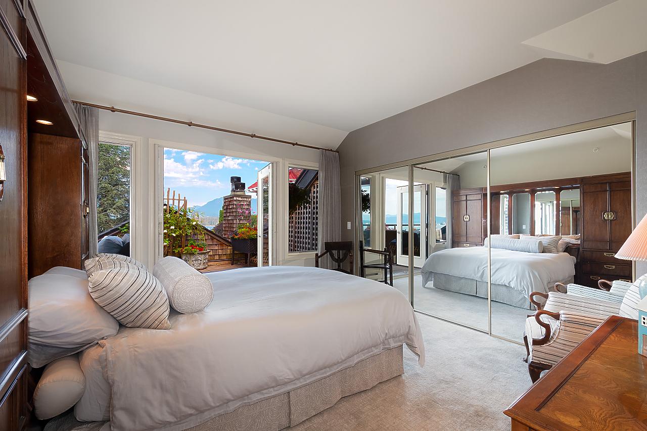 This truly unique top-floor townhouse offers SOME OF THE MOST SPECTACULAR VIEWS IN THE CITY, and from every room! French doors from the light-filled living area and the king-sized primary bedroom take you to a massive 407 Sq. Ft. walkout deck with truly breathtaking views, offering an ideal indoor/outdoor lifestyle. A private elevator takes you directly to your private garage! Thoughtful designer touches abound, tons of in-suite storage plus a large storage locker, all in a well-maintained boutique building with a friendly pro-active strata. Set high on the hill in a super-quiet enclave just a block to the beach, yet only a 2 minute drive to all shops and services, and 10 minutes to downtown, this no-compromise location offers the utmost in both lifestyle and convenience. A rare opportunity to own something extremely special!