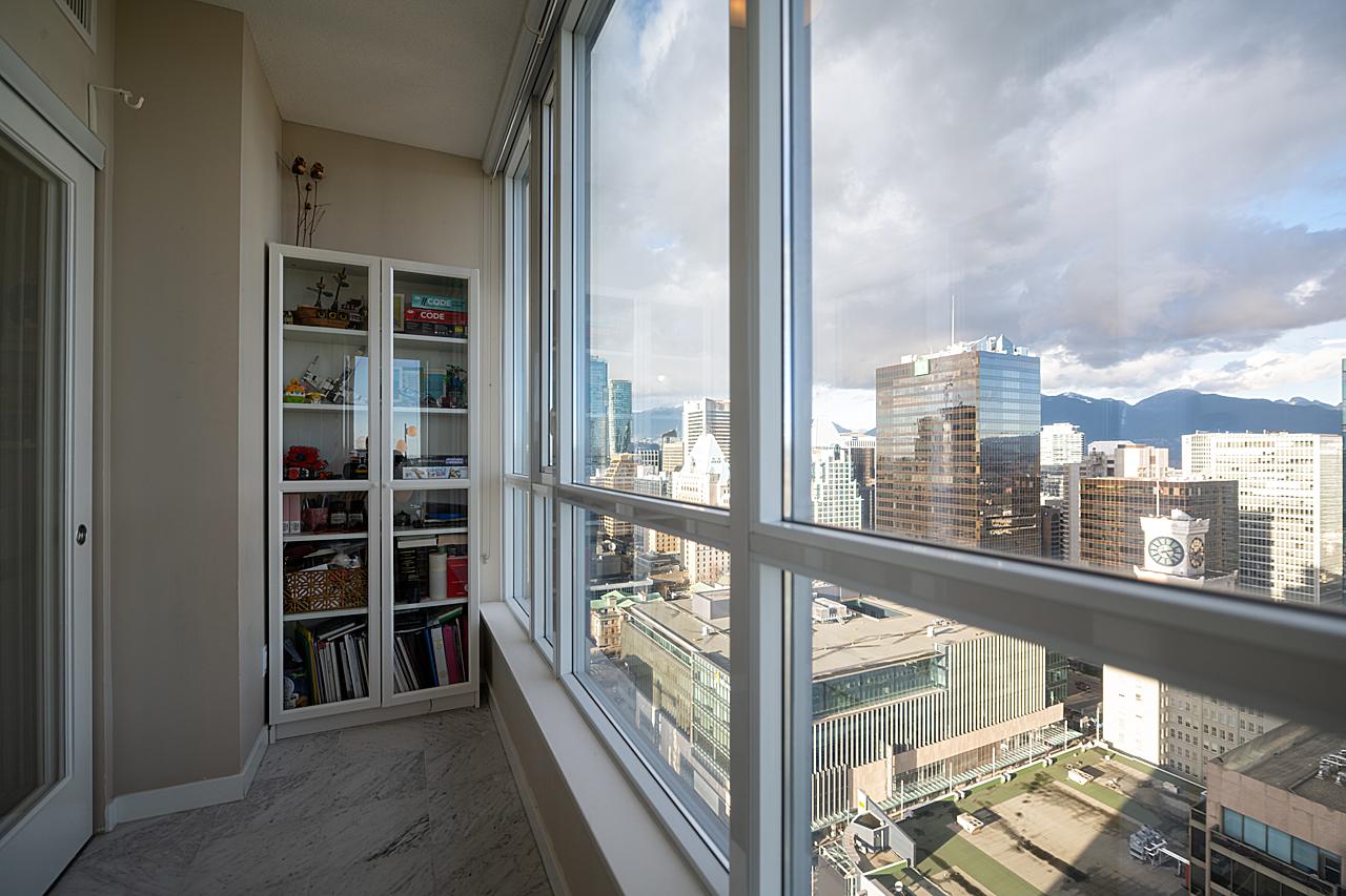 Breathtaking water, mountain, and iconic city views from every room of this lovely air-conditioned corner suite offering 1025 sq. ft. of living space with 2 well - separated bedrooms, 2 full bathrooms, solarium plus a den/office. Enjoy sophisticated downtown living in the Capitol Residences Luxury Collection, within steps of fabulous restaurants, shops, theatres, Skytrain, and a short stroll to Robson Street, Yaletown and the Seawall.