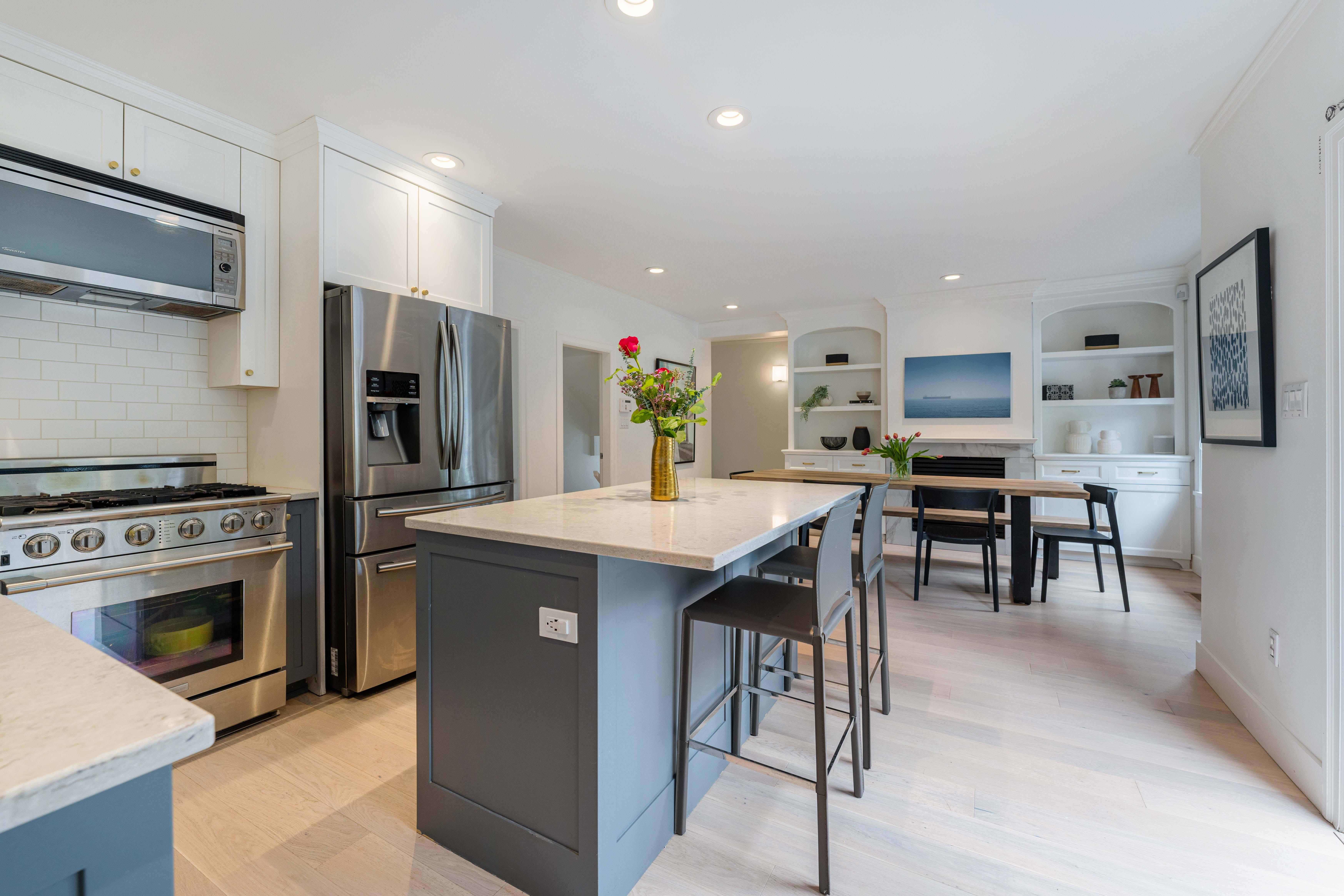 -Renovated kitchen (2015) with centre island, Wolf and Bosch stainless steel appliances