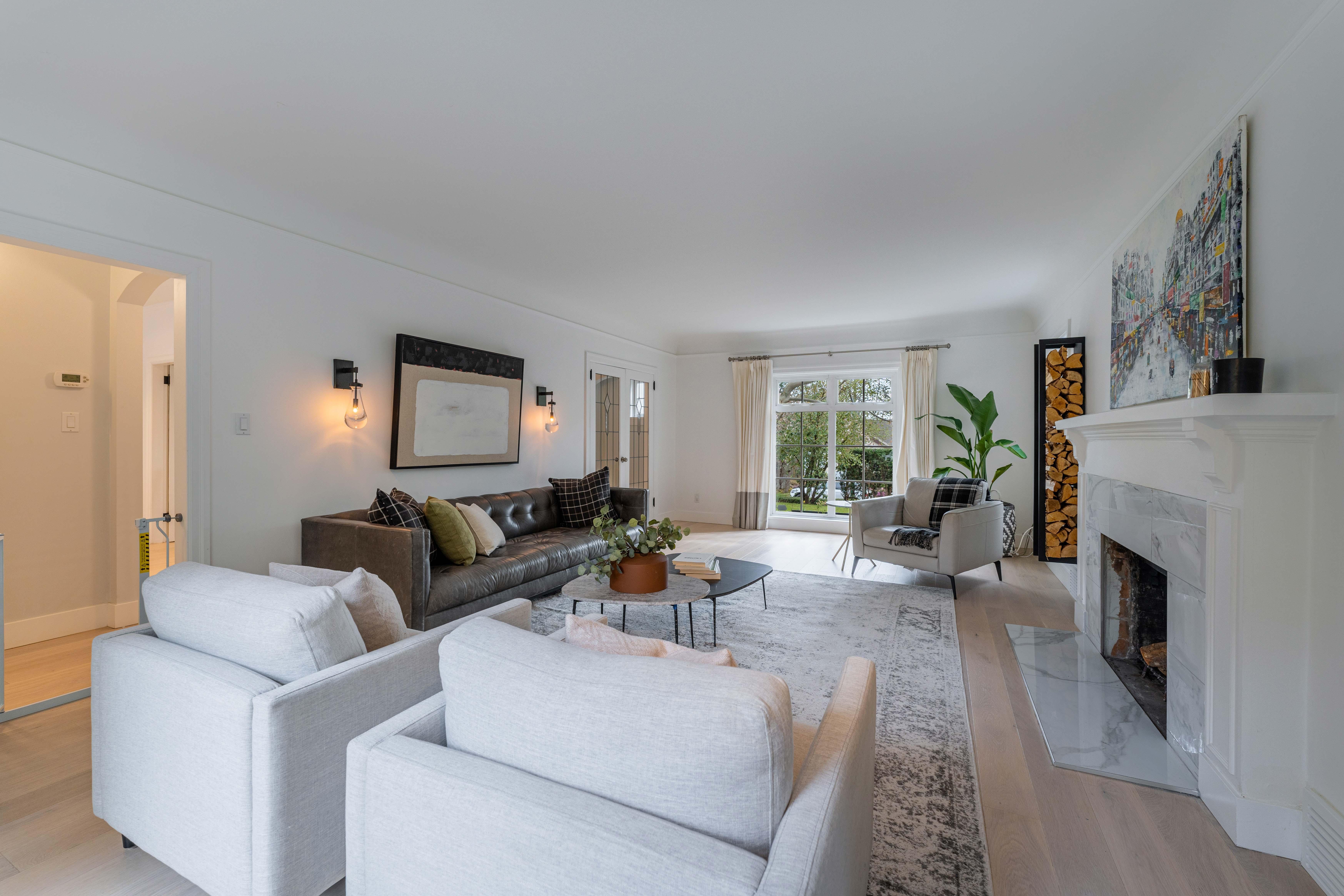 GREAT INVESTMENT OPPORTUNITY! ENJOY THIS GORGEOUS HOME, EXPAND, OR SUB-DIVIDE AND REDEVELOP! SO MANY OPTIONS! Set on huge 74' x 144' SUB-DIVIDABLE LOT, this elegant sunlit RENO'D Kerrisdale home welcomes you via a gracious foyer and spacious living & dining rooms. So many stylish updates: Gorgeous New HW floors, lighting, paint, kitchen that opens to a huge deck, w/SS appliances, gas range, island with seating, family-size eating area & adjacent family room. 3 bdrms up (could be 4!) include large primary w/ renovated ensuite bathroom & huge walk-in-closet. Fully finished basement w/ large rec room with FP, guest bedroom, 4 piece bathroom, laundry/storage room & wine cellar. AC. New Roof, New exterior paint, New 200amp service ready for your electric vehicle. Close to best schools. This one is special. Buyer to verify redevelopment options with C.O.V.