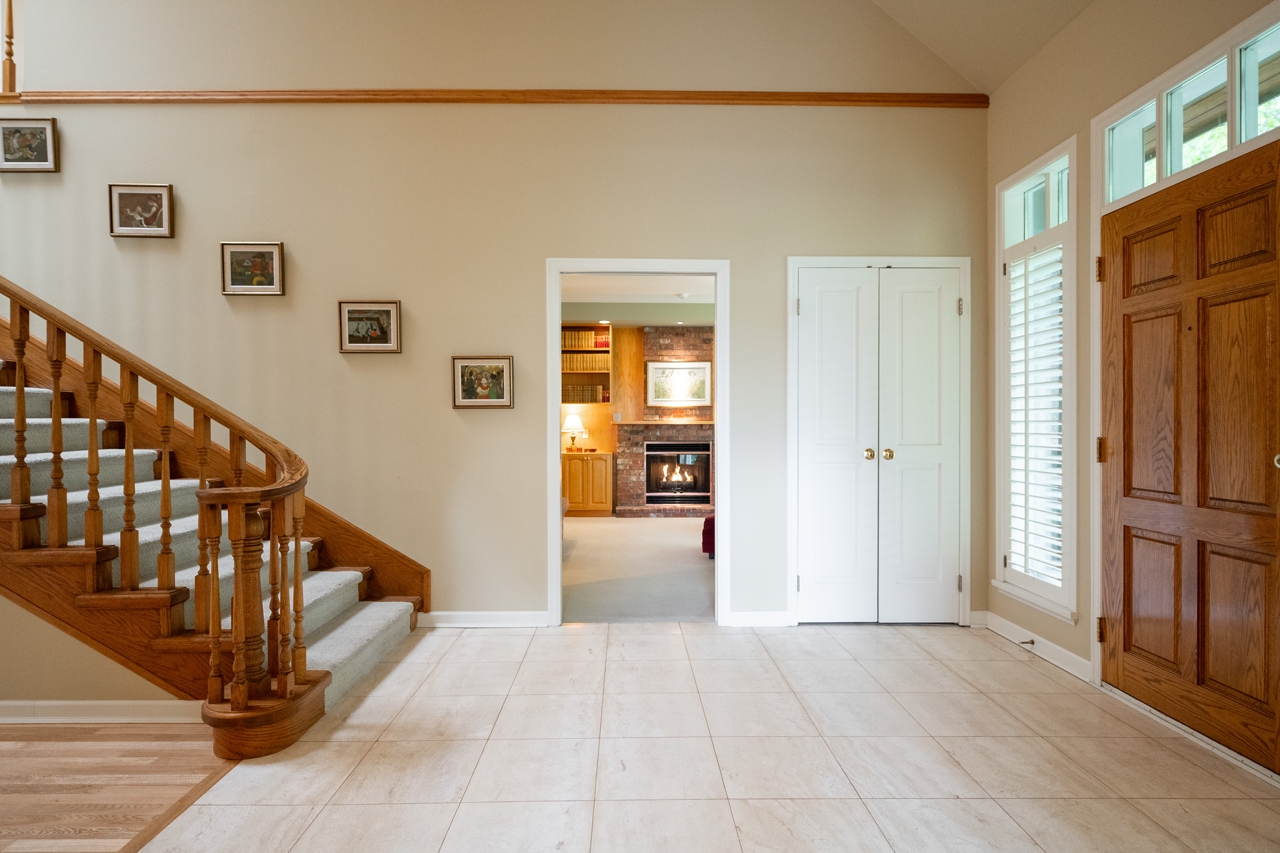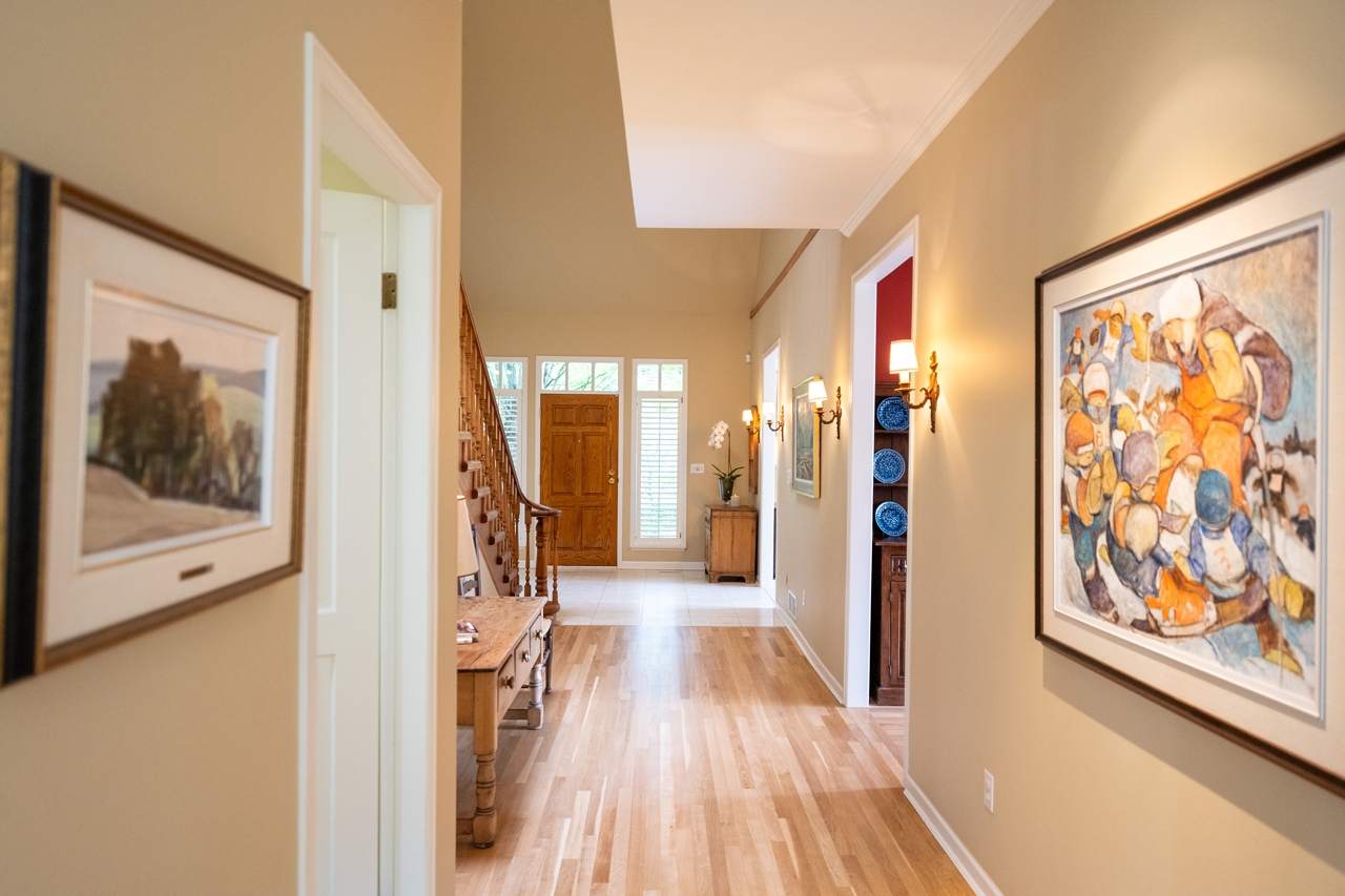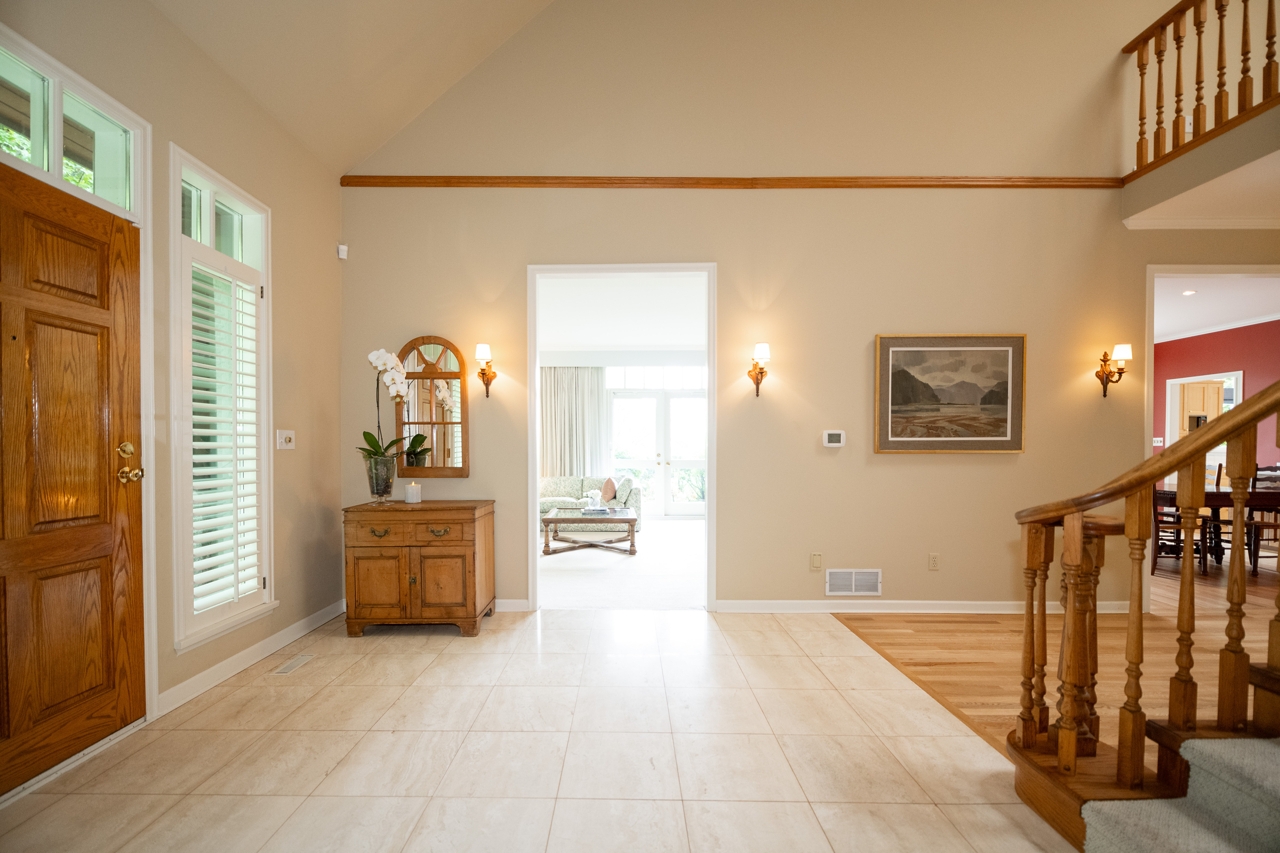 Wide, elegant entrance hall opening to gracious living room, dining room, den and kitchen