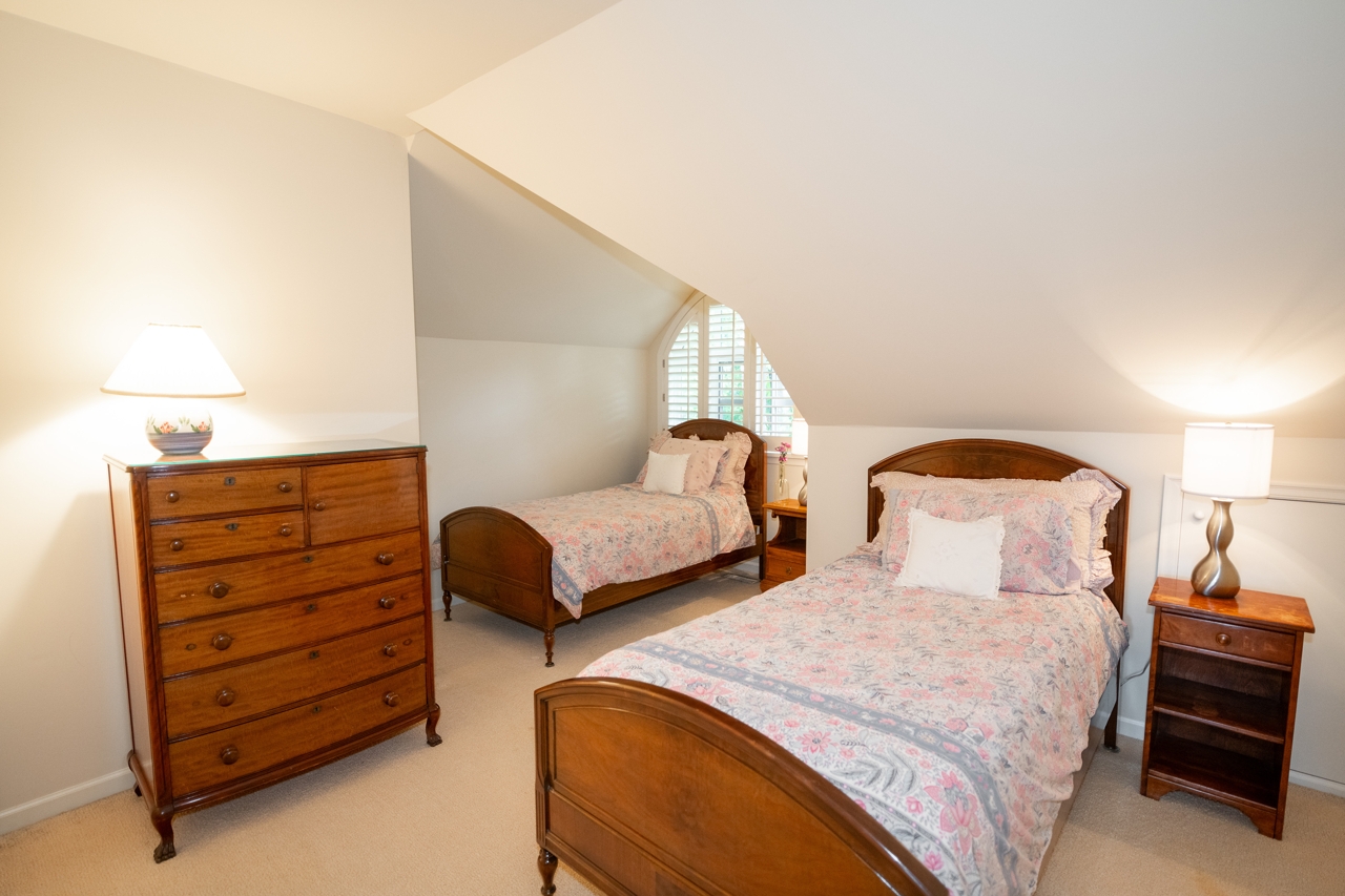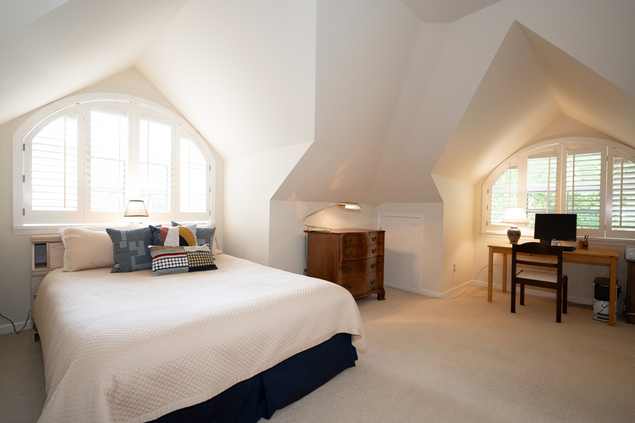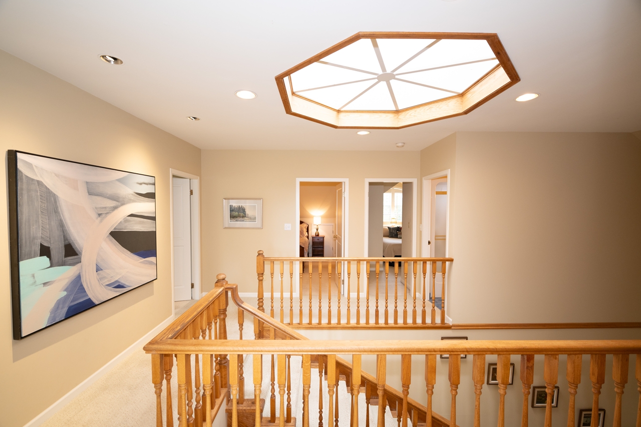 The spacious upper hall opens to 4 large bedrooms and 3 full bathrooms including: