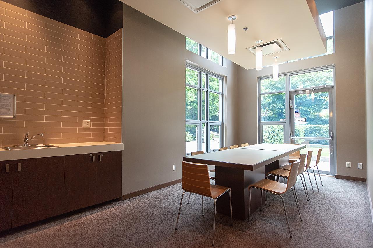 Removed glass enclosed den and tile floor to create open-plan dining area