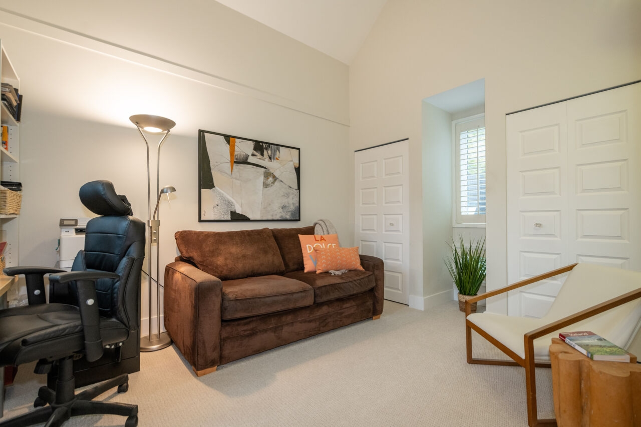 Large 2nd bedroom with dramatic 16' vaulted ceiling, California Shutters, and 2 closets