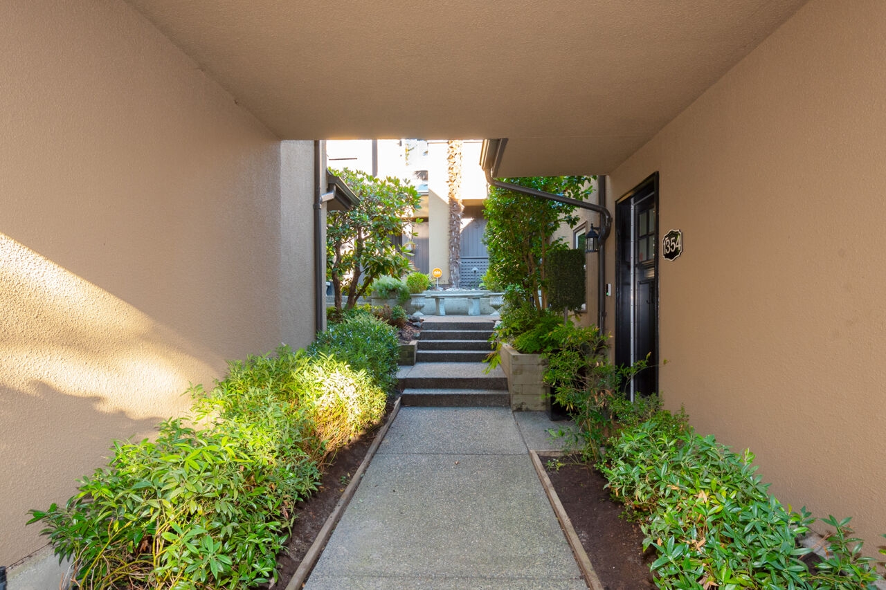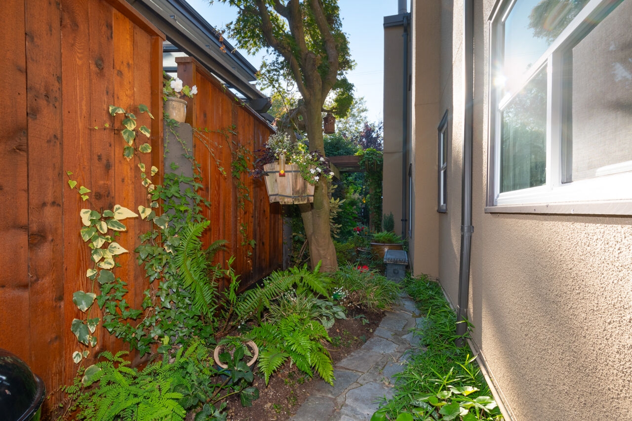 Over 700 sq. ft. of lushly landscaped very private outdoor space with 10' X 10' retractable awning - a true oasis and gardeners delight with sunny south-west exposure