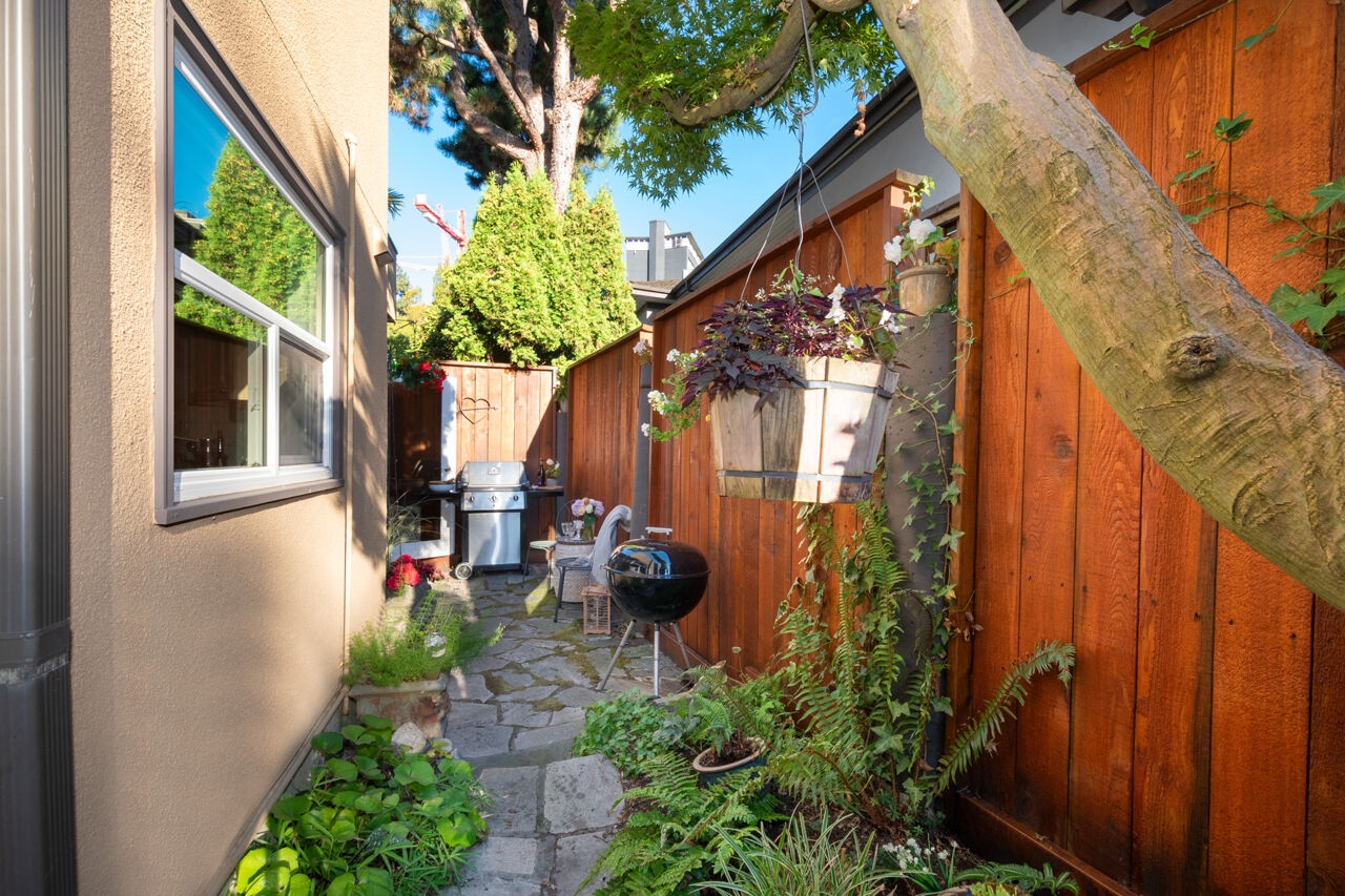This gorgeous and wonderfully private 2-level 1529 sq. ft. townhome exudes a beach house vibe, with spacious sunny rooms and French doors opening to large lushly landscaped flagstone wrap-around patio. Set in the heart of the coveted beach-side Kits Point neighbourhood, just steps from the beach and park, the sea wall to Granville Island, and all that vibrant Kitsilano has to offer, and minutes into downtown Vancouver.