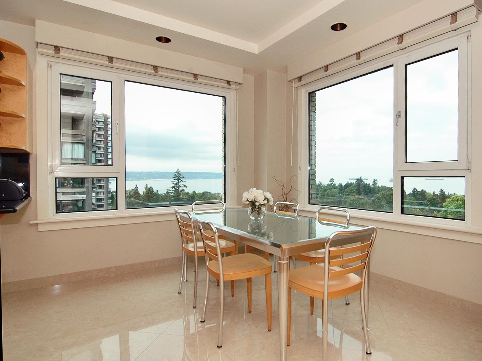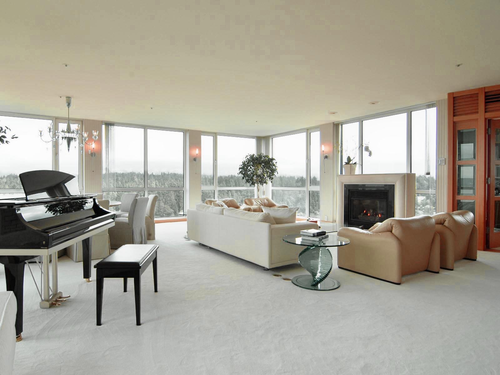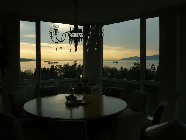 Floor to ceiling windows frame spectacular ocean, harbour, park and city views from this 2825sf home encompassing the entire 13th floor of The Presidio at Stanley Park, one of the most sought after buildings in Vancouver. This elegant apartment, perched above the Park, comprises three bedrooms all with en suite baths, powder room, den, library, massive living and dining room, newer kitchen with top-of-the-line appliances, eating area, laundry room, and private elevator foyer. This is an extraordinary unit boasting attention to every detail including extensive millwork and built-in cabinetry of exotic pear wood and Anigre, marble floors, custom glass doors and granite counters. The spacious floor plan provides excellent separation and privacy for the master suite with views of Lost Lagoon, walk in closet, remote-controlled blackout drapery, and ensuite bath with large soaker tub, separate shower, bidet and two vanities. Other features of this home include air conditioning, gas fireplace, built-in vacuum, separate storage and 2 parking. This is a rare opportunity to own this upscale and glamorous home with Stanley Park at your doorstep.