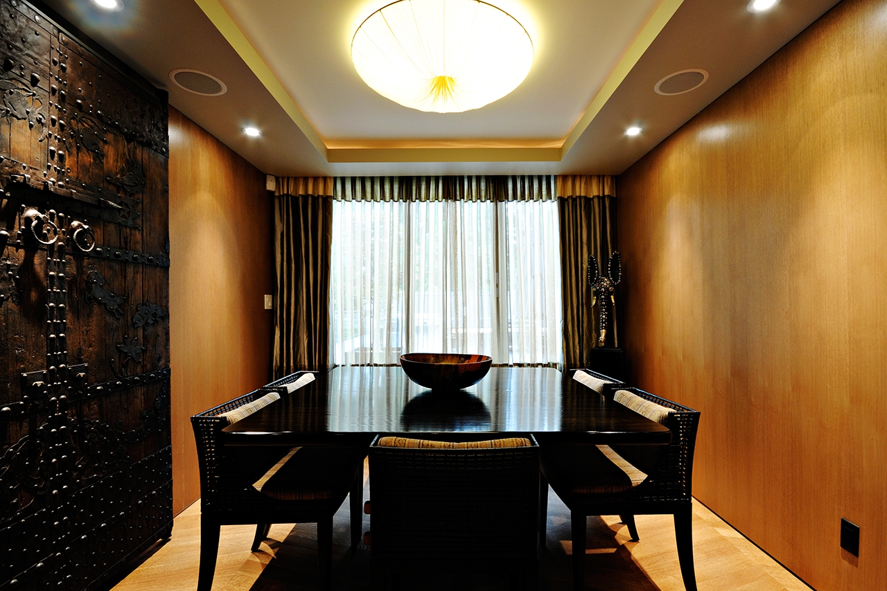 Cove ceiling detail with hidden lighting to highlight stunning silk light fixture