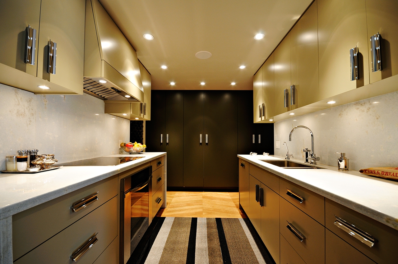 Polished chrome hardware on all doors and hinges and most cabinetry