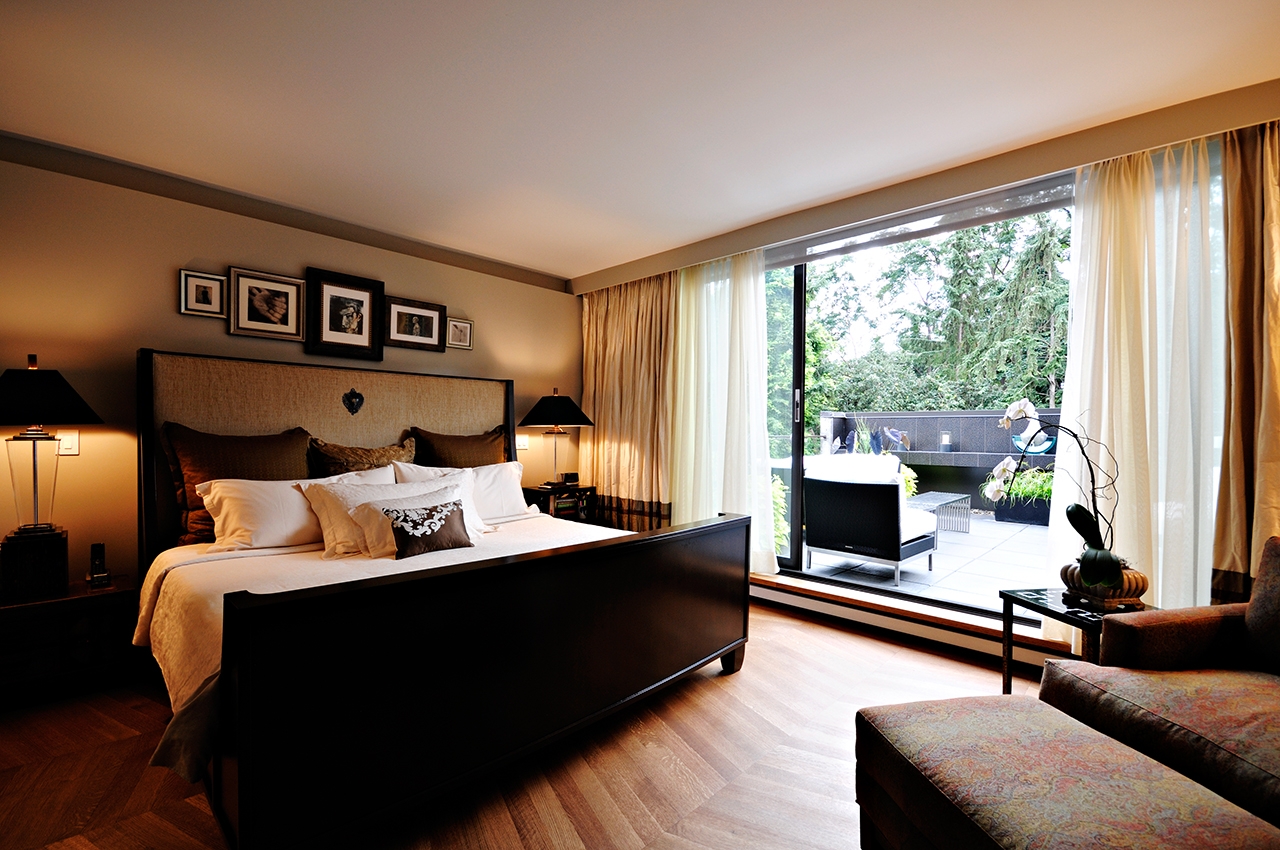 An ambiance of European elegance permeates this completely unique, beautifully renovated 2937sqft apartment set overlooking Van Dusen Gardens in the heart of Vancouver’s exclusive Shaughnessy neighbourhood. Masterfully redesigned, with 3 bedrooms and 5 bathrooms, this luxurious home is virtually brand new, having been stripped to the concrete shell and rebuilt with all new plumbing, walls, wiring, flooring, windows and doors. The 2190sqft main level, with custom chevron pattern oak floors offers a stunning new kitchen, spacious living and dining rooms, leather-panelled powder room, generous laundry room, gorgeous family room/library and the sumptuous master suite with his and hers ensuite baths and walk-in closets. Gracious living and entertaining move seamlessly from interior spaces to two massive terraces that overlook the park. The upper level, with private entrance for guests, offers 2 bedrooms each with ensuite bath, and a third private deck overlooking the park. Highlighted by the finest-quality all natural materials and remarkable attention to detail,this home features abundant use of exquisite wood, marble, granite and onyx stone slabs, glass tiles and leather panelling. Some of the many features include, custom white oak millwork throughout, custom Eco-Smart ethanol fireplace, 5 built-in televisions, large pantry, remote control automated awnings with wind sensors, extensive wiring with Control 4, cable, and stereo speakers and wiring for satellite dish. Enjoy a carefree resort lifestyle with 24hour gated security, live-in caretaker, and outdoor saltwater pool. This home comes with 4 underground parking spots and a large private storage room.