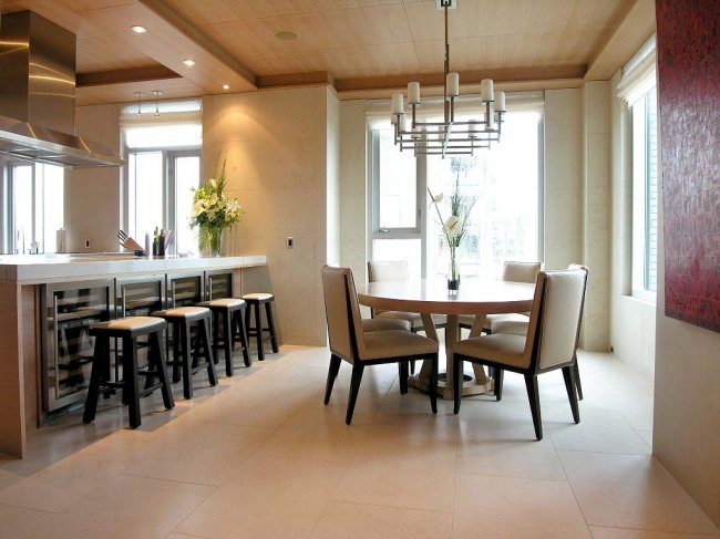 · Terrazzo stone countertops in Kitchen, Laundry Room, Bar and Master Ensuite with stainless steel inlays.
