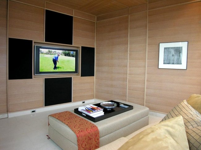 · Home cinema with a dedicated equipment rack that houses all Audio/Visual and control system equipment including a plasma screen, video processor and loudspeakers.