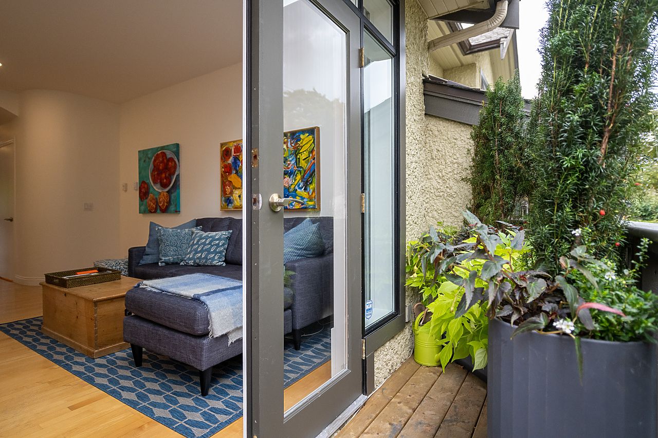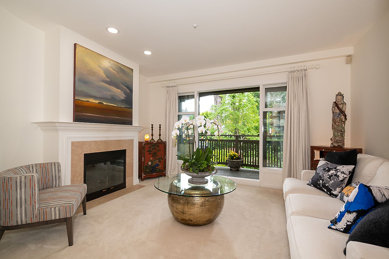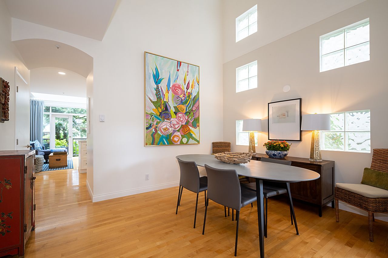 Beautifully updated 2-level townhome in meticulously maintained 4-plex set on lovely tree-lined street in coveted Lower Shaughnessy. Light-filled north, east and south exposure, and fabulous floorplan with spacious HOUSE-SIZE ROOMS. Generous outdoor spaces include large landscaped fenced patio and French doors opening to 2 balconies. Features include impressive dining room with soaring 2-story vaulted ceiling, updated kitchen with adjacent family room and cozy gas FP, king-size master bedroom with walk-in-closet and ensuite bathroom, and large 2nd bedroom. HUGE STORAGE ROOM, and private 1- car garage. Within minutes of Arbutus and South Granville shops and services and a short walk to Vancouver Lawn & Tennis Club. Shaughnessy Elementary and Kitsilano Secondary Schools. Pets and rentals OK.