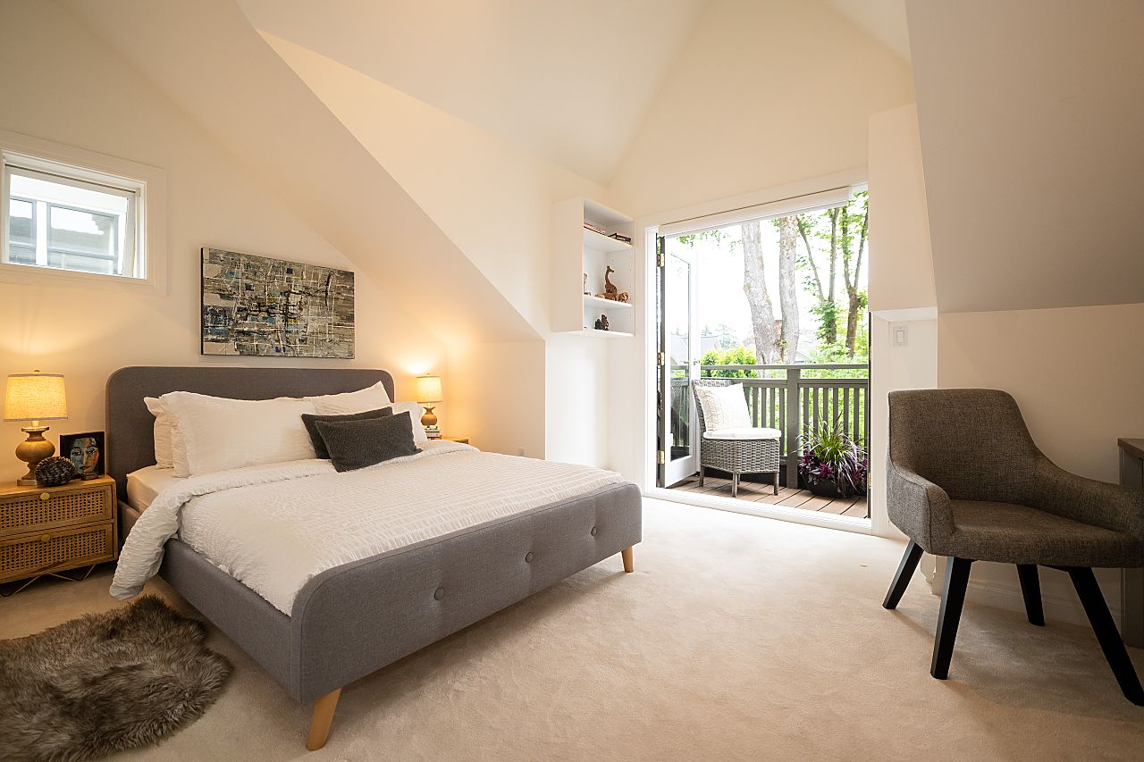 - Large 2nd bedroom with vaulted ceiling and French doors opening to Juliette balcony