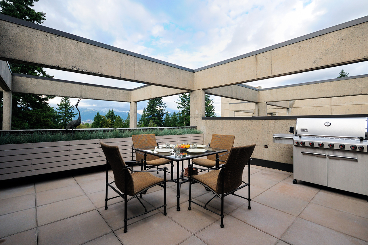 Ultimate luxury and complete privacy are yours in this newly renovated 3,027sqft penthouse at Shaughnessy Place. Recently stripped to the concrete shell and masterfully redesigned by McCulloch & Associates this home is virtually brand new. The state-of-the-art kitchen is the focal point of the contemporary open plan layout, with grand size principle rooms opening via slide-away glass doors to three enormous decks with custom designed hanging wall gardens. This home offers 3 bedrooms, 4 baths, family room, and a spacious laundry room. The third bedroom is privately set with its own entrance, ideal for live-in staff. Lovely city and mountain views are framed by majestic evergreens. Shaughnessy Place is a gated complex with 24 hr gated security, outdoor pool and recreation facility. This home comes with 2 parking and large storage. Pets are welcome at Shaughnessy Place. Rentals are not permitted.