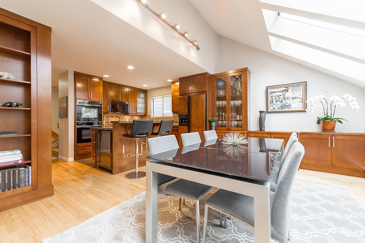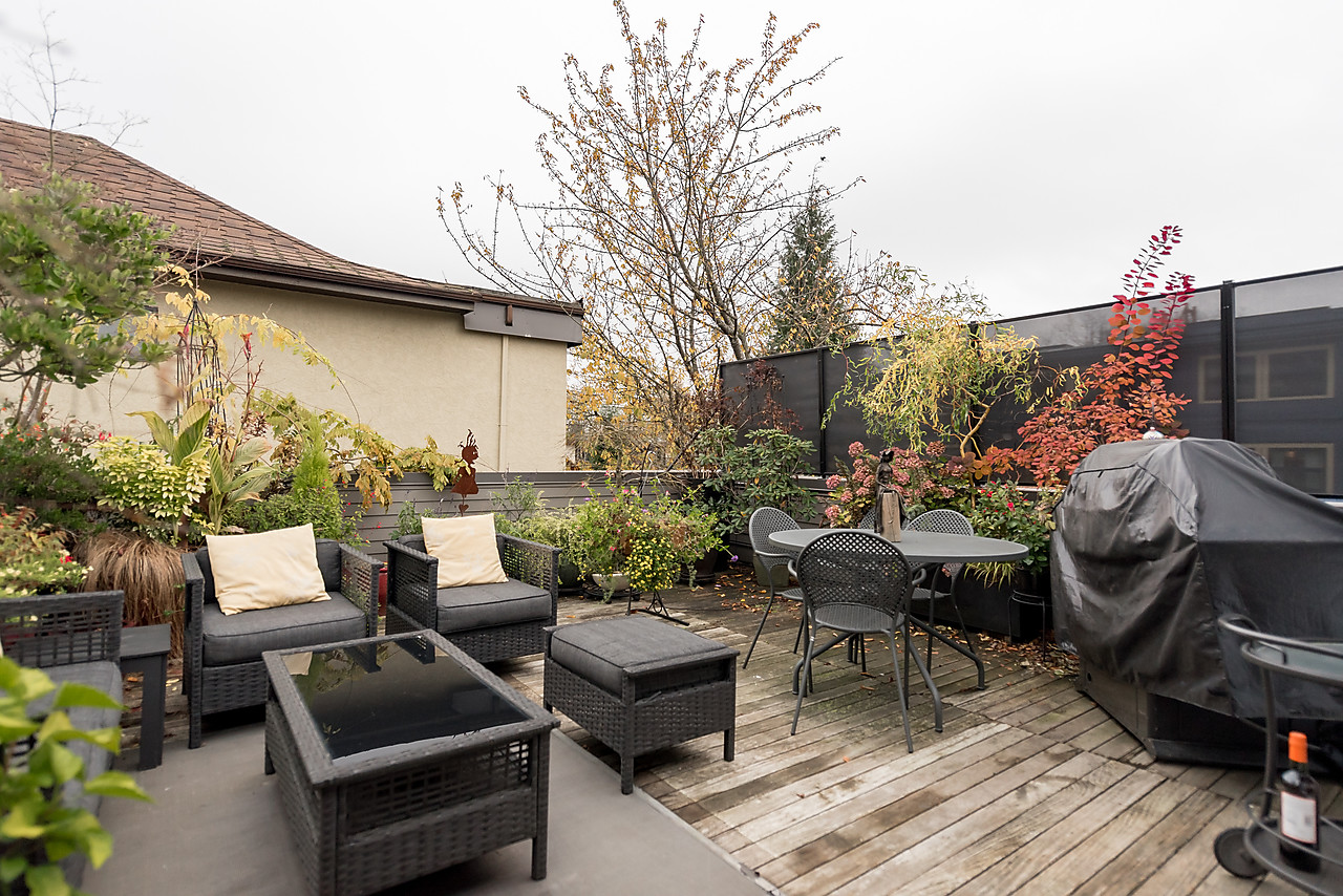 The UNBELIEVABLE 400sqft private sun-drenched deck makes this elegant townhouse truly one-of-a-kind. An entertainer’s dream, this 1570sqft, 2-level, 2 bedroom + office, 2-bath home has been completely renovated, and features high quality millwork everywhere you look, Miele appliances, stone countertops, wine fridge and a generous skylit dining room that can easily sit 10-12. French doors lead from the expansive living room to the beautifully landscaped patio for true indoor-outdoor living. Just touch a button and the retractable awning offers shade. Don’t miss this unique and sophisticated offering!
