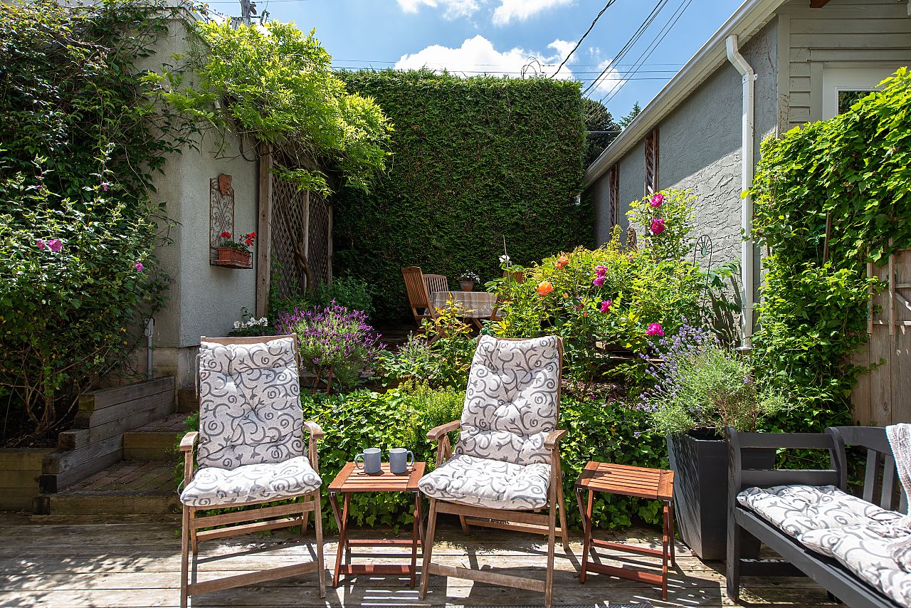 Beautifully and privately set ON ONE OF THE CITY’S MOST GORGEOUS TREE-LINED STREETS this recently updated, bright and airy 1802 sq. ft. 2-level home offers plenty of room for your house-size furniture. Gracious principal rooms on the main level open to the expansive, sunny, wrap-around patio, and the spacious upper level offers 3-bedrooms with PLENTY OF ROOM FOR A 4TH BEDROOM! Large reno’d kitchen with family-size eating area, formal dining room, reno’d bathrooms, king-size master bedroom with walk-in-closet and ensuite bath, newer appliances, single car garage.