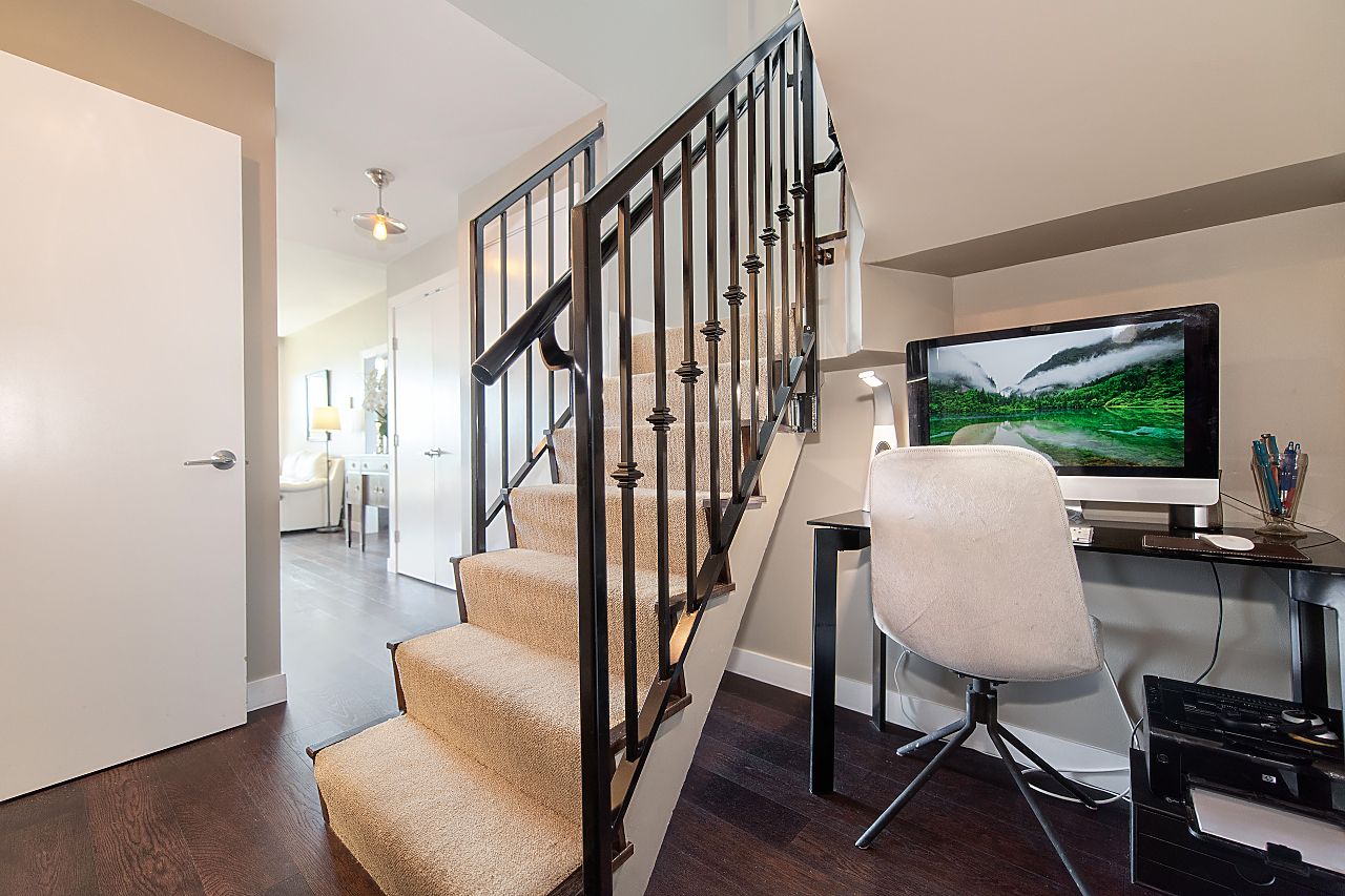 - Handy office nook tucked neatly beside the stairwell