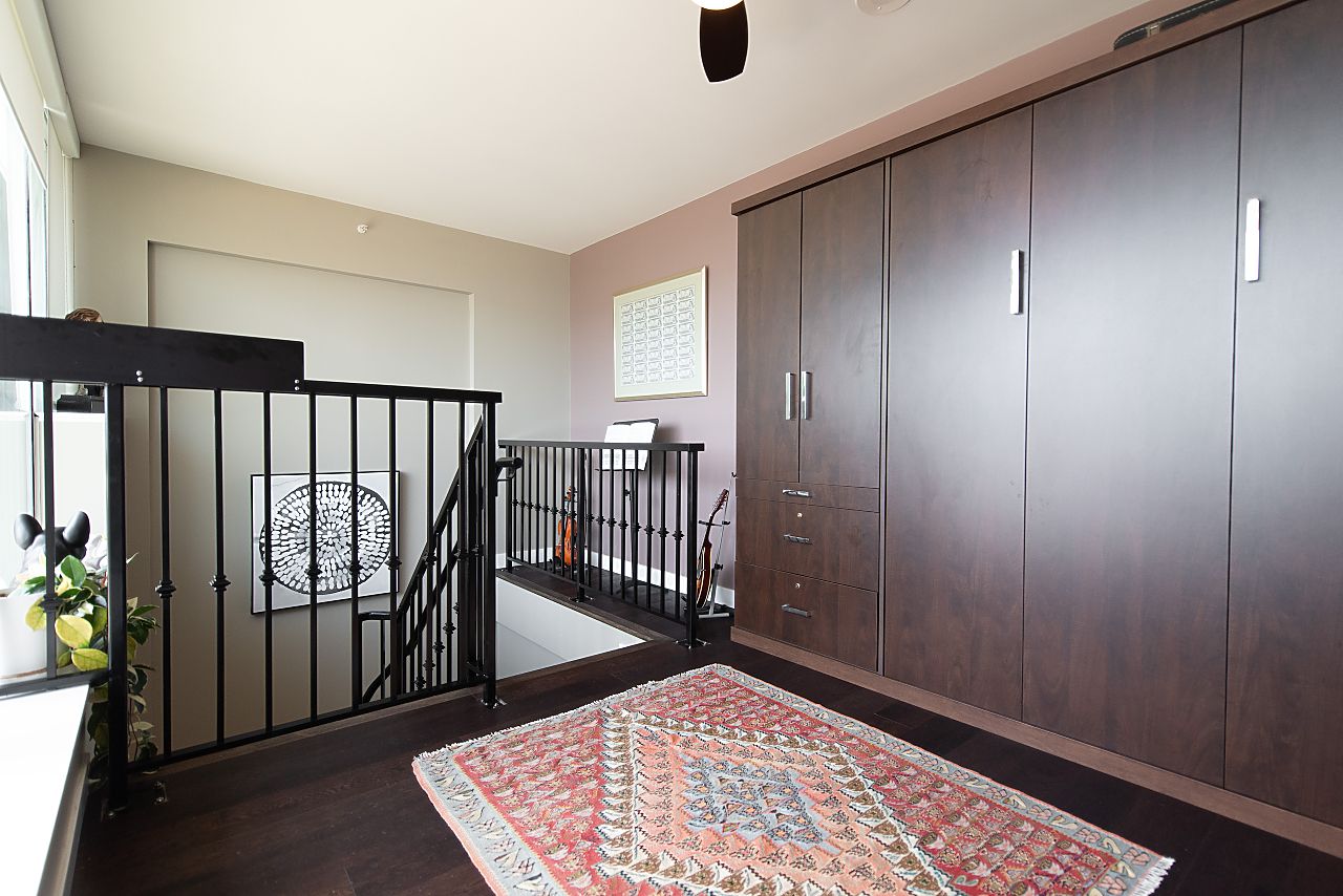 - Privately set second-level den with handy Murphy bed and closet for guests