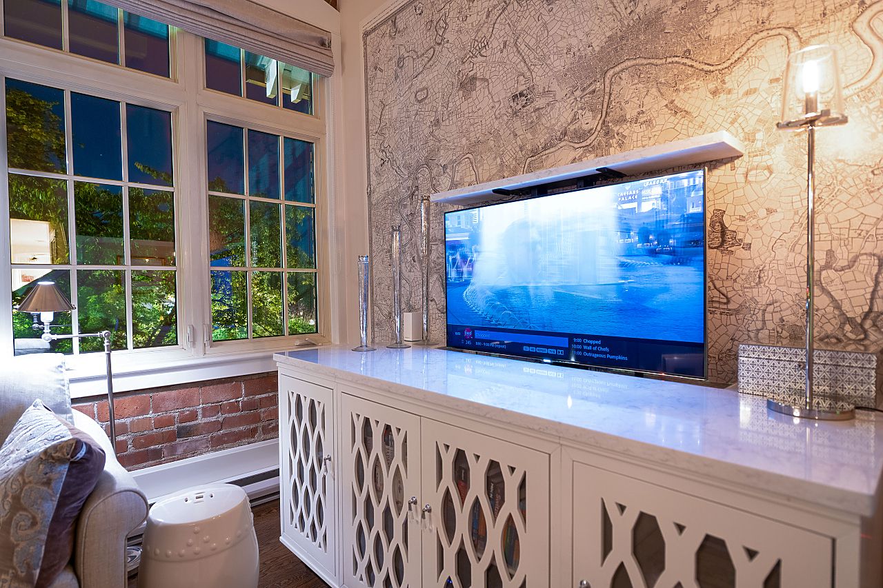 remote-controlled TV lift - Updated main floor bathroom with new toilet and vanity