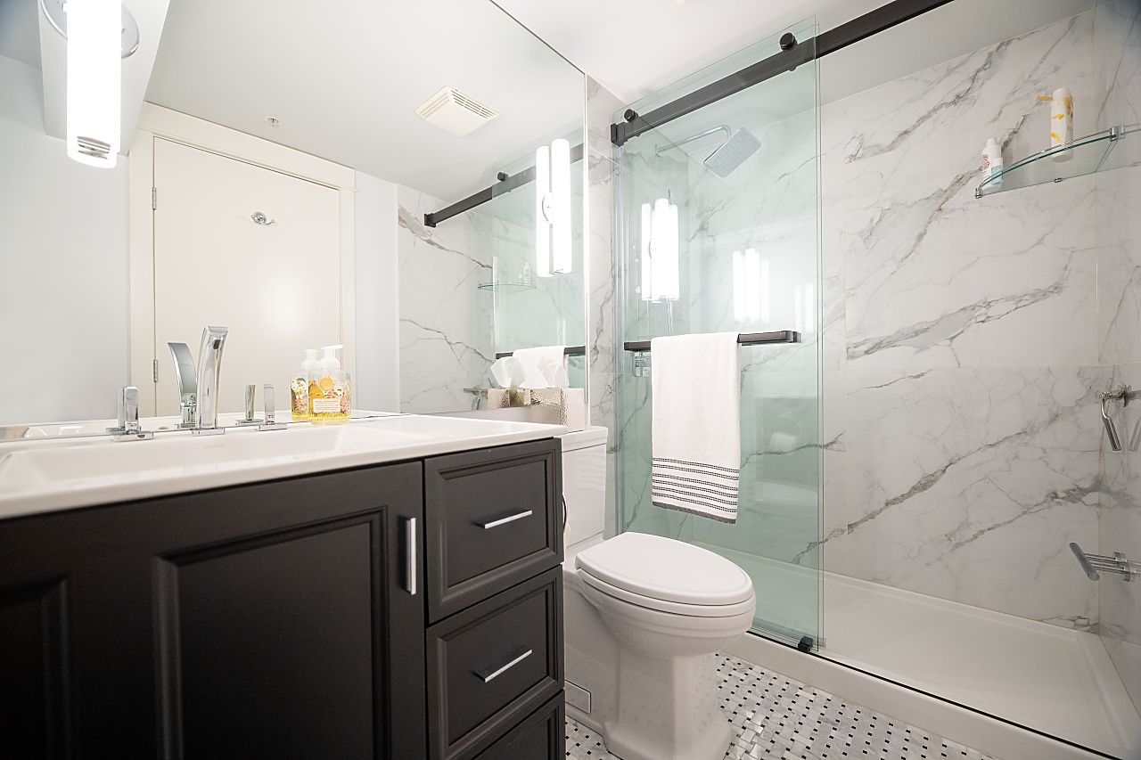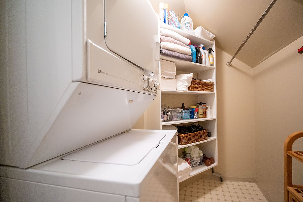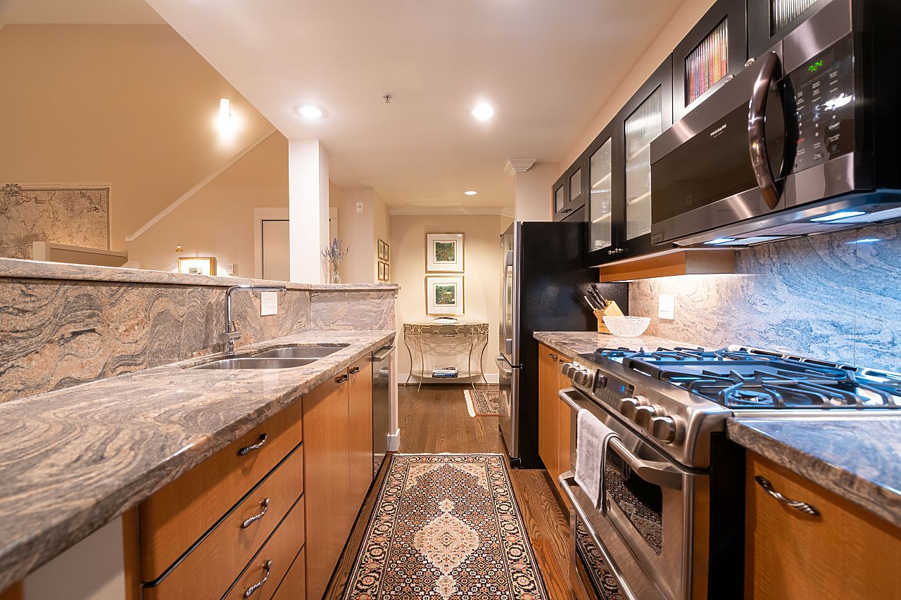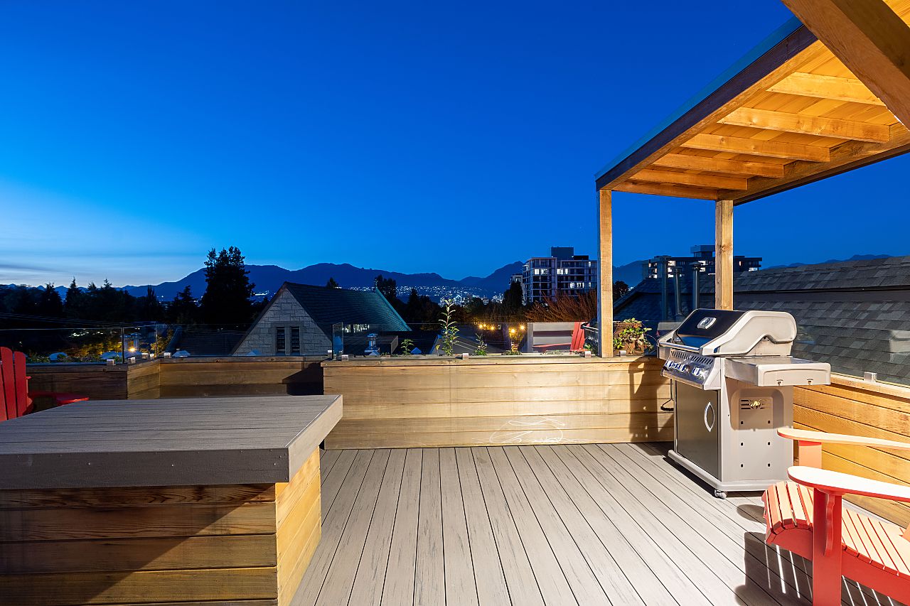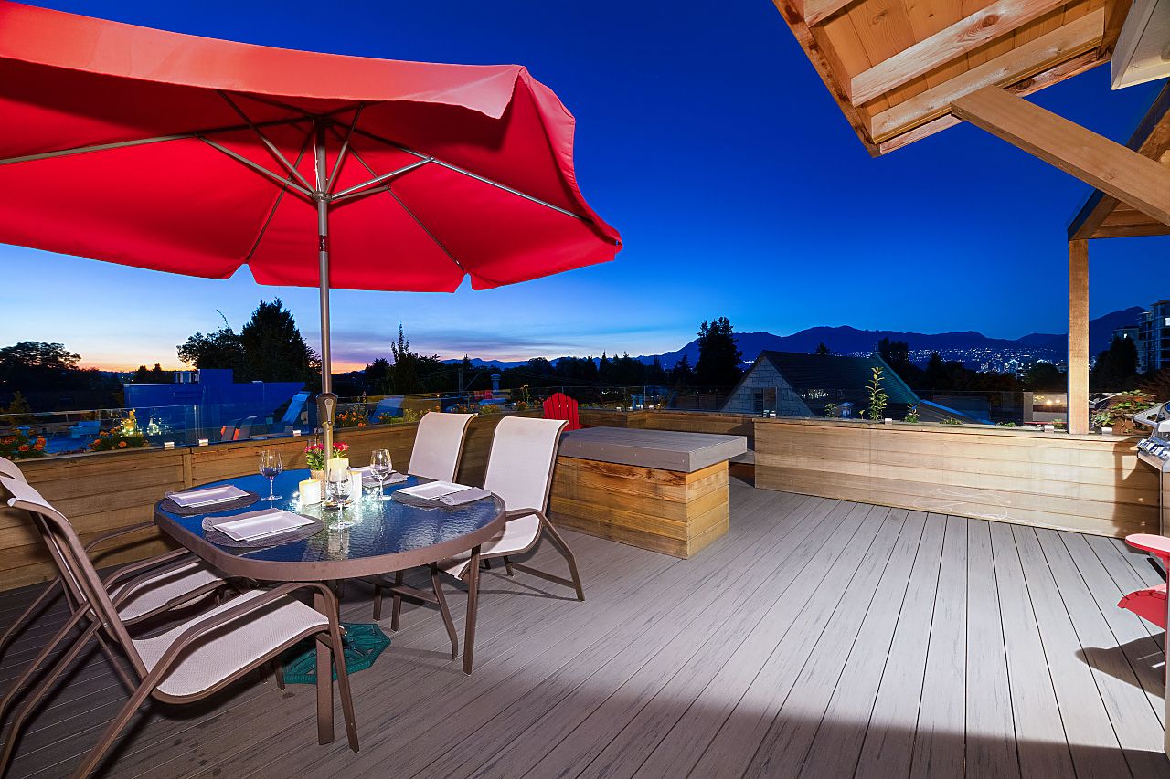 This unique apartment provides a communal entertainment-size lounging and dining area on the roof deck, one flight up via the staircase immediately beside the unit’s entrance door. This spectacular deck with stunning city, mountain, sunset, and water views is perfect for sun bathing, BBQs with friends and romantic al fresco dining under the stars. The deck has a covered area with natural gas BBQ, dining area for 6, and lounging area.