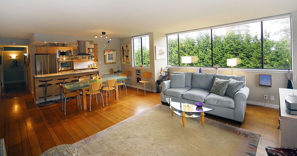 TOTALLY RENOVATED 1480sqft (incl balcony) spacious and bright condo in beautifully maintained park-side concrete building. Fantastic location, just 1 1/2 block to South Granville shops and restaurants. This 2 bedroom plus den, 2 1/2 bath suite is set amidst the treetops overlooking Granville Park, next to the Vancouver Lawn and Tennis Club.