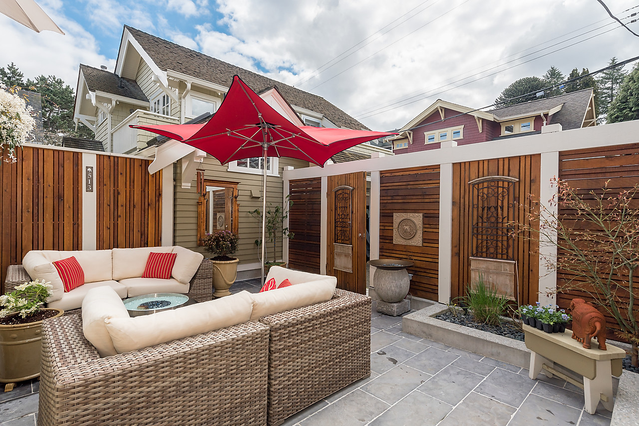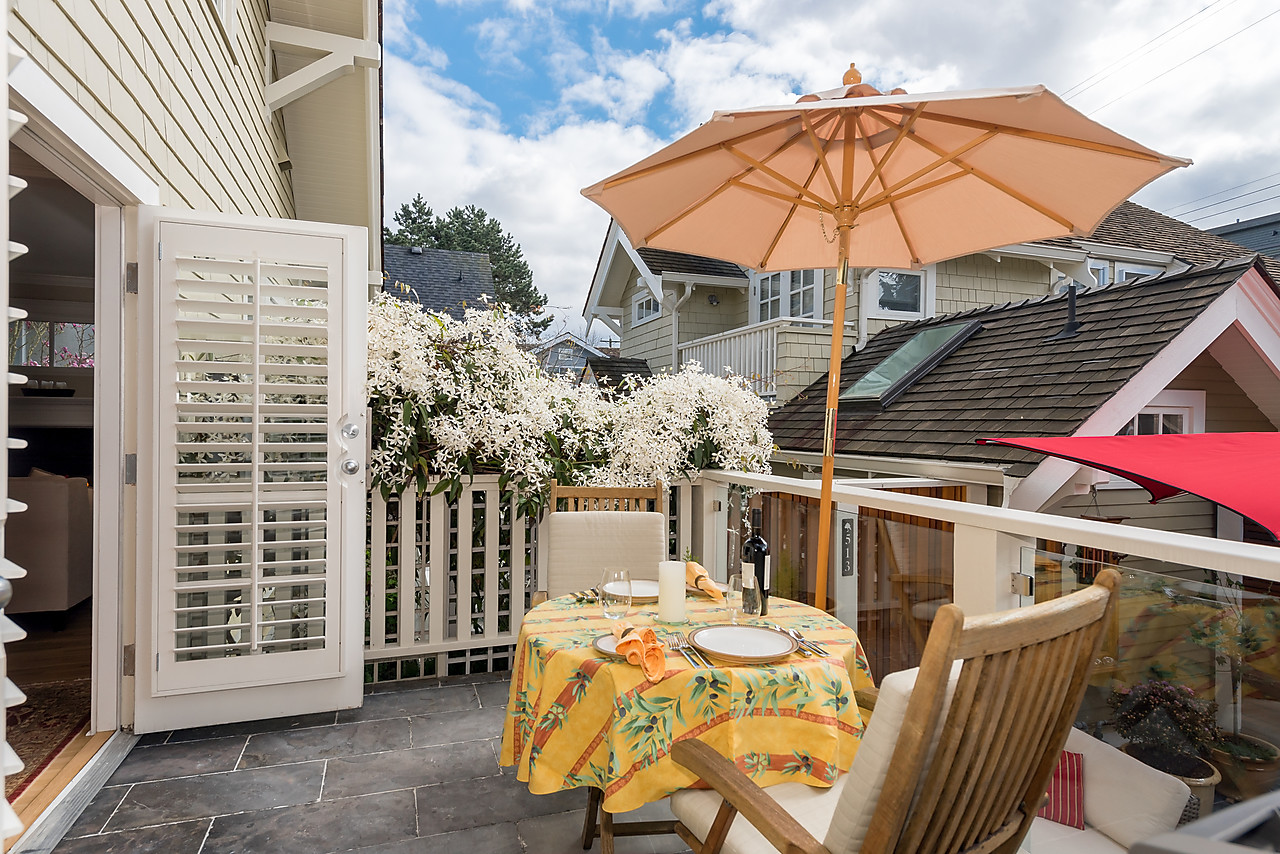 This immaculate, quality-built and recently renovated heritage-style ½ duplex is privately set on one of the prettiest streets in Lower Shaughnessy. 1648 SQFT, 3 bedrooms and 2 ½ baths. The open-plan main level opens via French doors to a SPACIOUS SOUTH-FACING DECK AND PATIO WITH 2 NATURAL GAS HOOK-UPS. Features include gleaming Oak floors, renovated bathrooms (including luxurious spa-style master ensuite with double sinks, soaker tub and separate shower), stone counters, wooden California shutters throughout, skylights, and tons of storage. Easy walk to trendy South Granville shops, restaurants, gourmet groceries, parks and schools. OPEN SUN, APRIL 3, 3PM - 5PM.